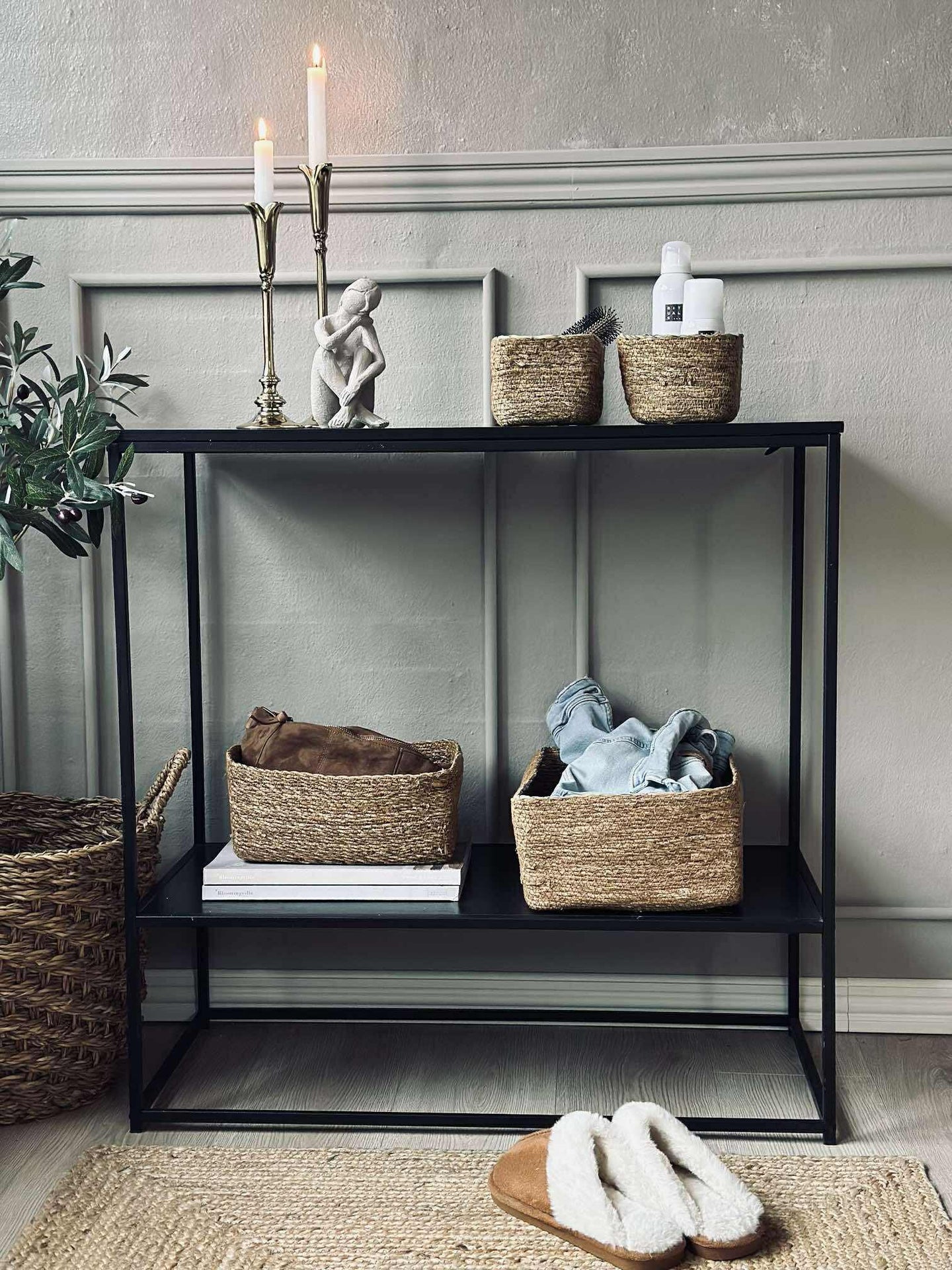 Sliter du med å holde orden i hjemmet? Dette settet gir deg et praktisk og stilrent alternativ for å organisere hverdagslige ting. Med naturlige materialer tilfører det en jordnær følelse, samtidig som det gir funksjonalitet til ethvert rom i hjemmet.