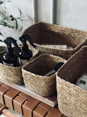 Flettede kurver laget av sjøgress gir en naturlig og varm følelse til gangen. Materialet er lett, men samtidig robust, noe som gjør det enkelt å flytte på kurvene etter behov. Sjøgress er et fornybart materiale som bidrar til et bærekraftig hjem. Det naturlige fibermønsteret gir tekstur og visuell interesse, samtidig som det passer godt inn med ulike interiørstiler.