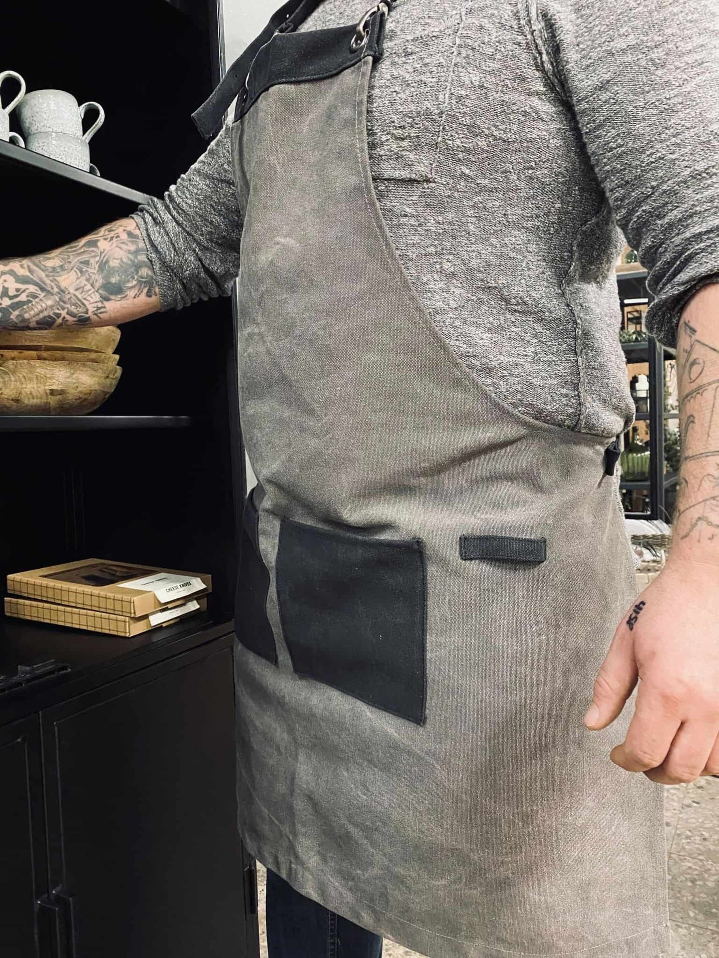 Oppgrader kjøkkenet ditt med et praktisk og funksjonelt forkle i kanvas – Grå. Beskytt klærne dine mens du lager deilige måltider, uten å bekymre deg for søl. Gjør matlagingen til en lek med dette holdbare og enkle å rengjøre forkleet. Bestill ditt nye favorittforkle i dag!