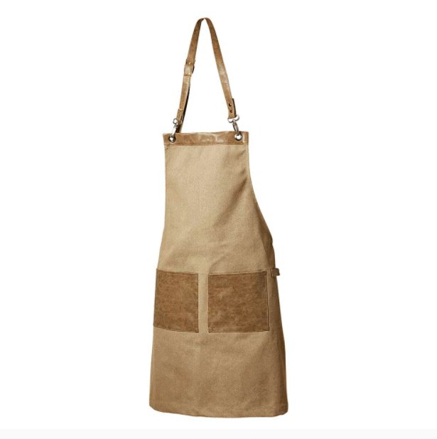 Sliter du med å holde klærne rene mens du lager mat? Forkleet Forkle i kanvas med 2 lommer - Lys brun tilbyr praktisk oppbevaring og enkel beskyttelse mot søl. Det er enkelt å vedlikeholde, og det er et funksjonelt valg for enhver kjøkkenentusiast.