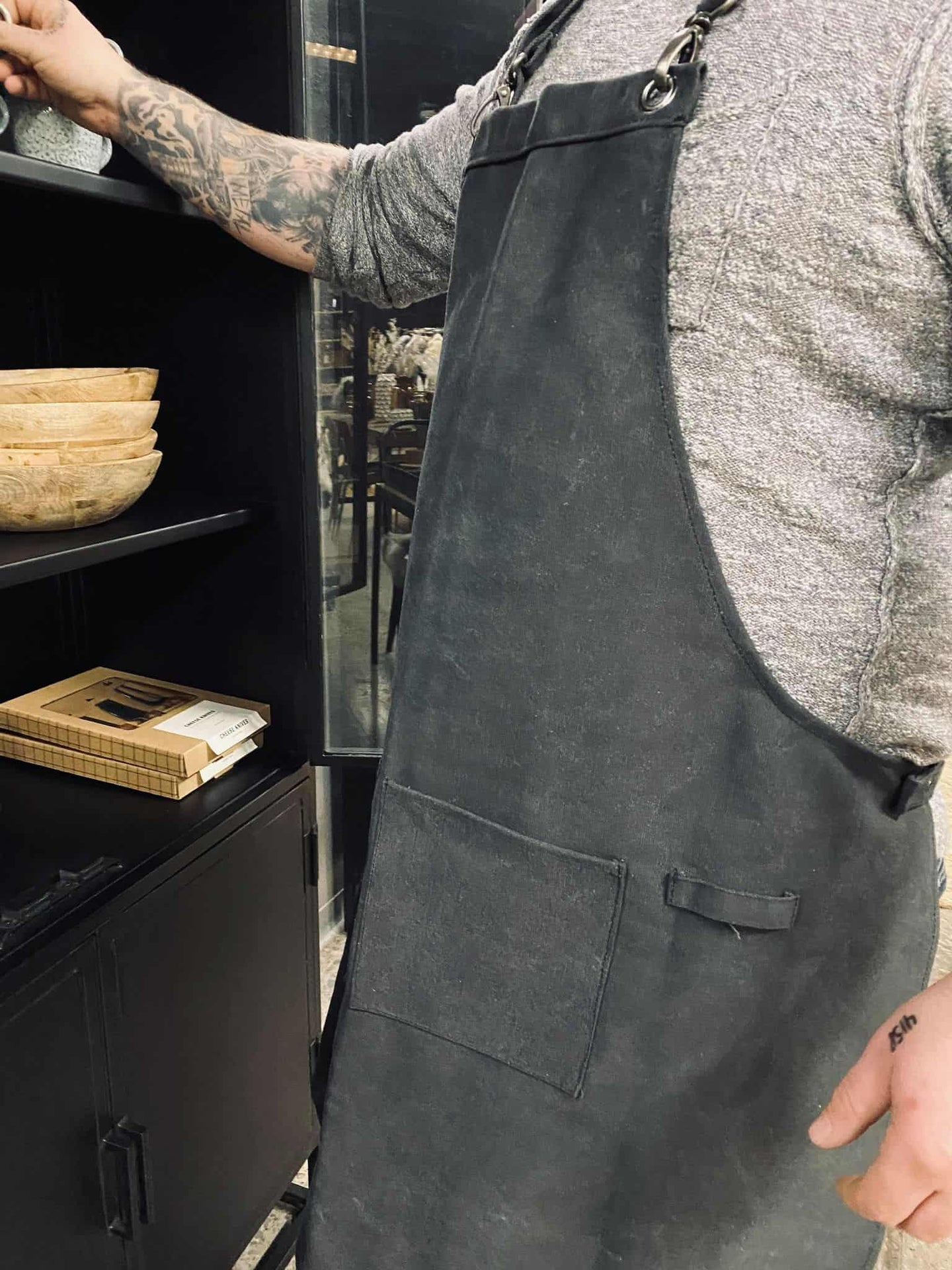 Sliter du med å holde klærne rene mens du lager mat? Dette slitesterke forklet i svart kanvas gir deg et praktisk og stilfullt alternativ som tåler hverdagsbruk. Bruk det for å beskytte klærne dine, samtidig som du opprettholder et moderne kjøkkenutseende.