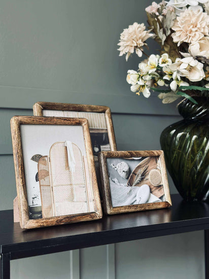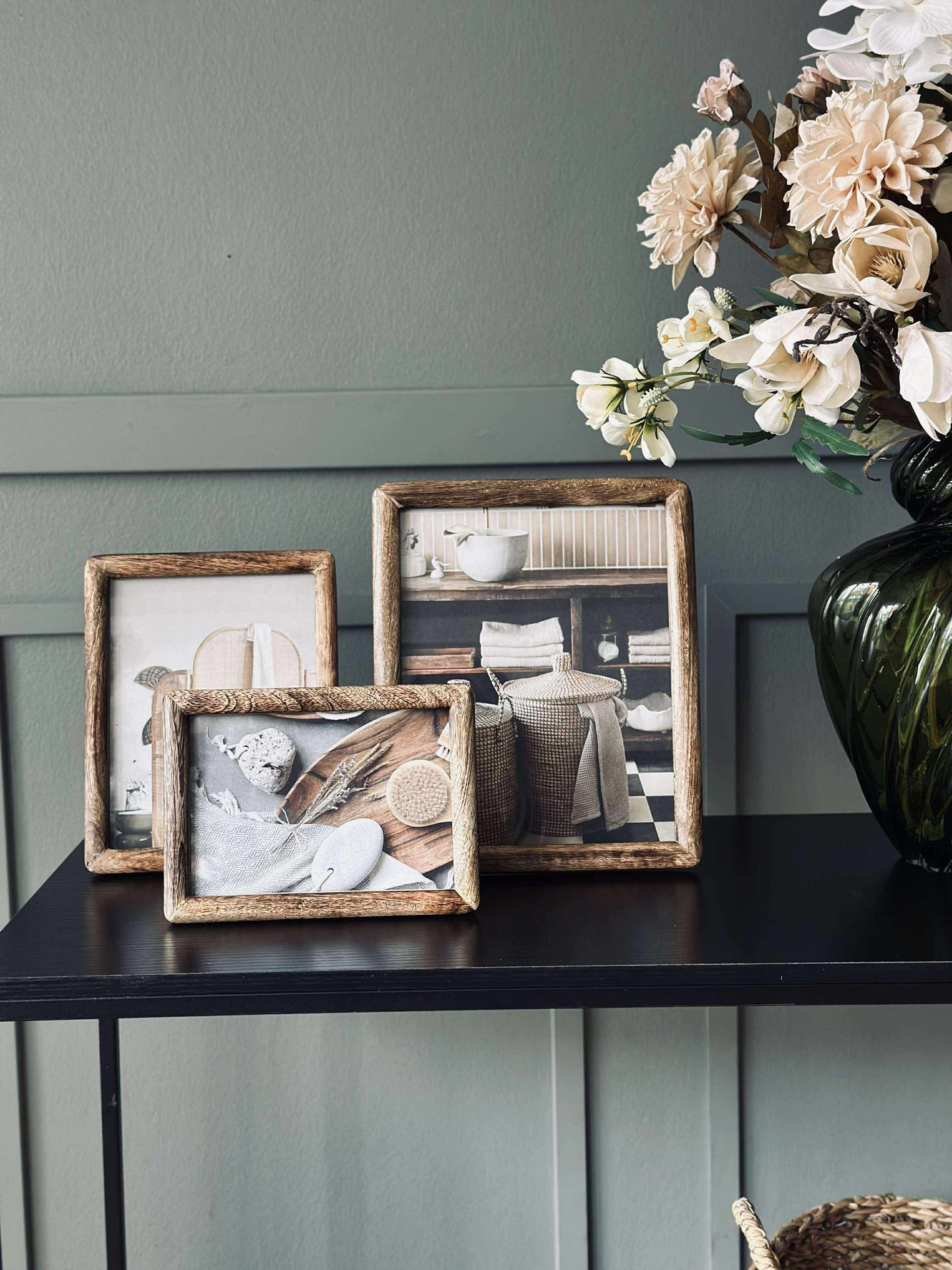 Billedrammen med en tre-ramme tilfører et naturlig element til innredningen, som skaper en følelse av varme og inviterer til en hjemmekoselig atmosfære. Treets tekstur og farge gir en subtil dybde som komplementerer bildet, samtidig som det gir et solid og holdbart rammeverk. Dette gjør det enkelt å integrere billedrammen i ulike stilretninger og interiørkonsepter.
