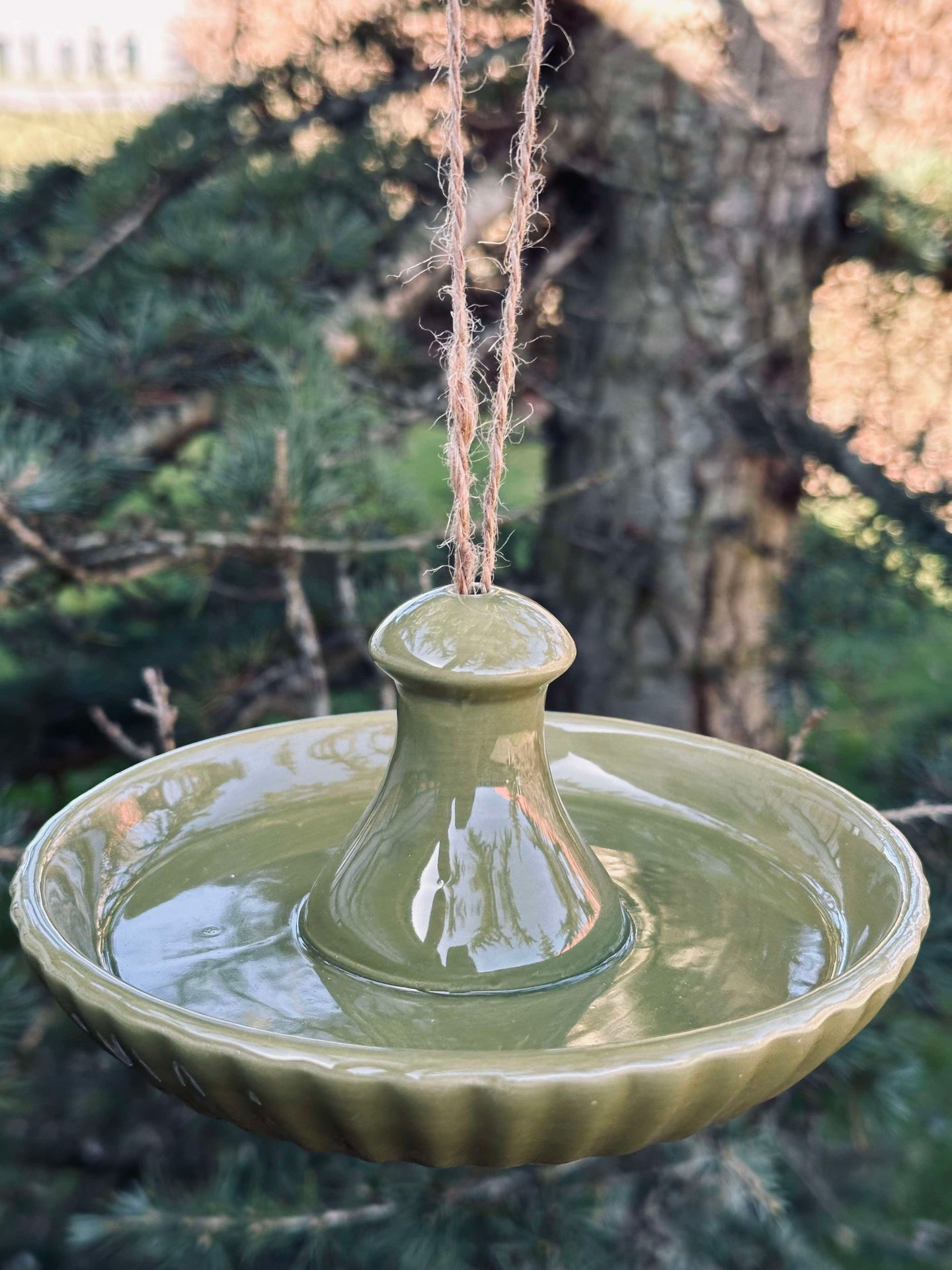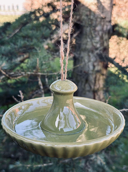 Fuglemater oppheng - Grønn keramikk