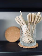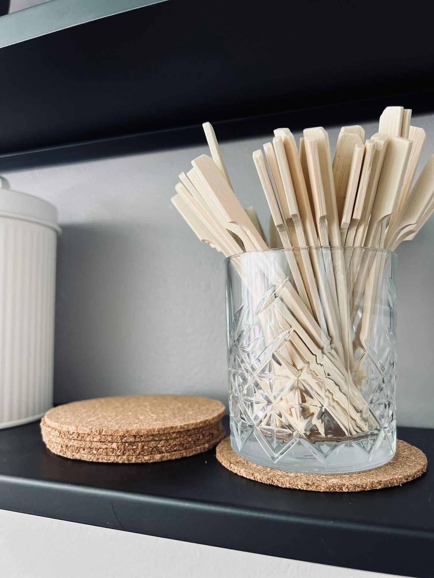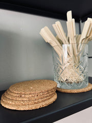 Glasbrikker i kork gir en naturlig og varm følelse til interiøret. Kork er et bærekraftig materiale som er både lett og holdbart, noe som gjør det enkelt å håndtere og rengjøre. Materialet beskytter effektivt overflater mot varme og fuktighet, og reduserer risikoen for skader på bordet. Korkens naturlige tekstur gir også en sklisikker overflate som holder glassene trygt på plass.