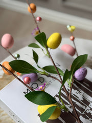 Gren med påskeegg - Color egg er en søt påskegren med egg og små perler, som gir et lett og vårfrisk uttrykk. Den er lett å style i en vase, og du kan forme grenen ved å bøye den, så den passer til høyden på ditt oppsett.