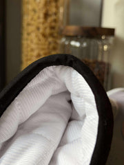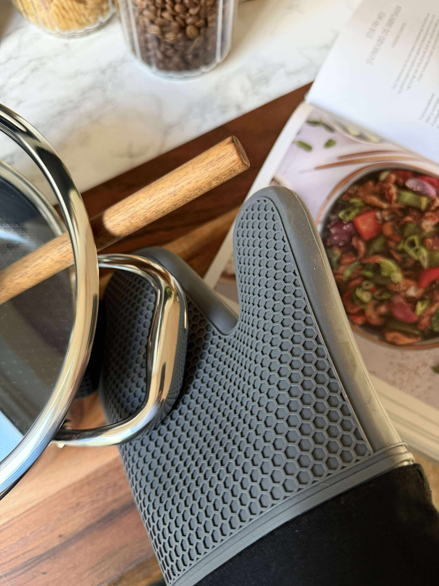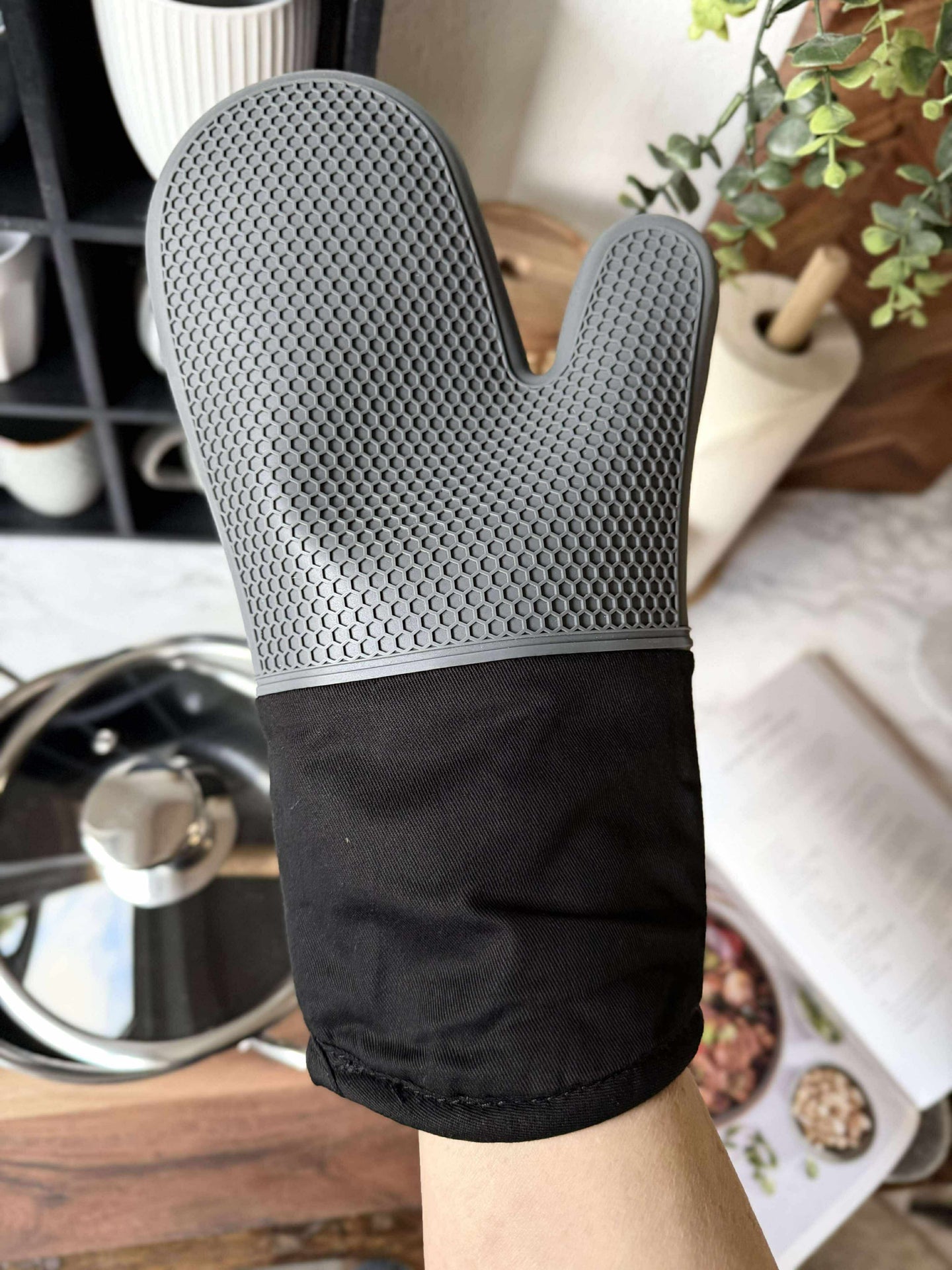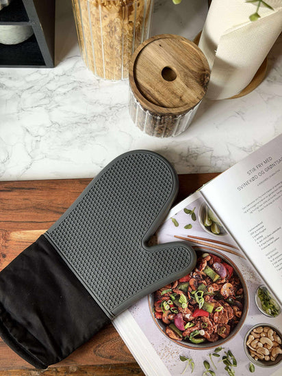 Hansken tåler varme opptil 250 grader og egner seg for å ta varme brett og former ut av ovnen eller håndtere varme gjenstander ved grillen.