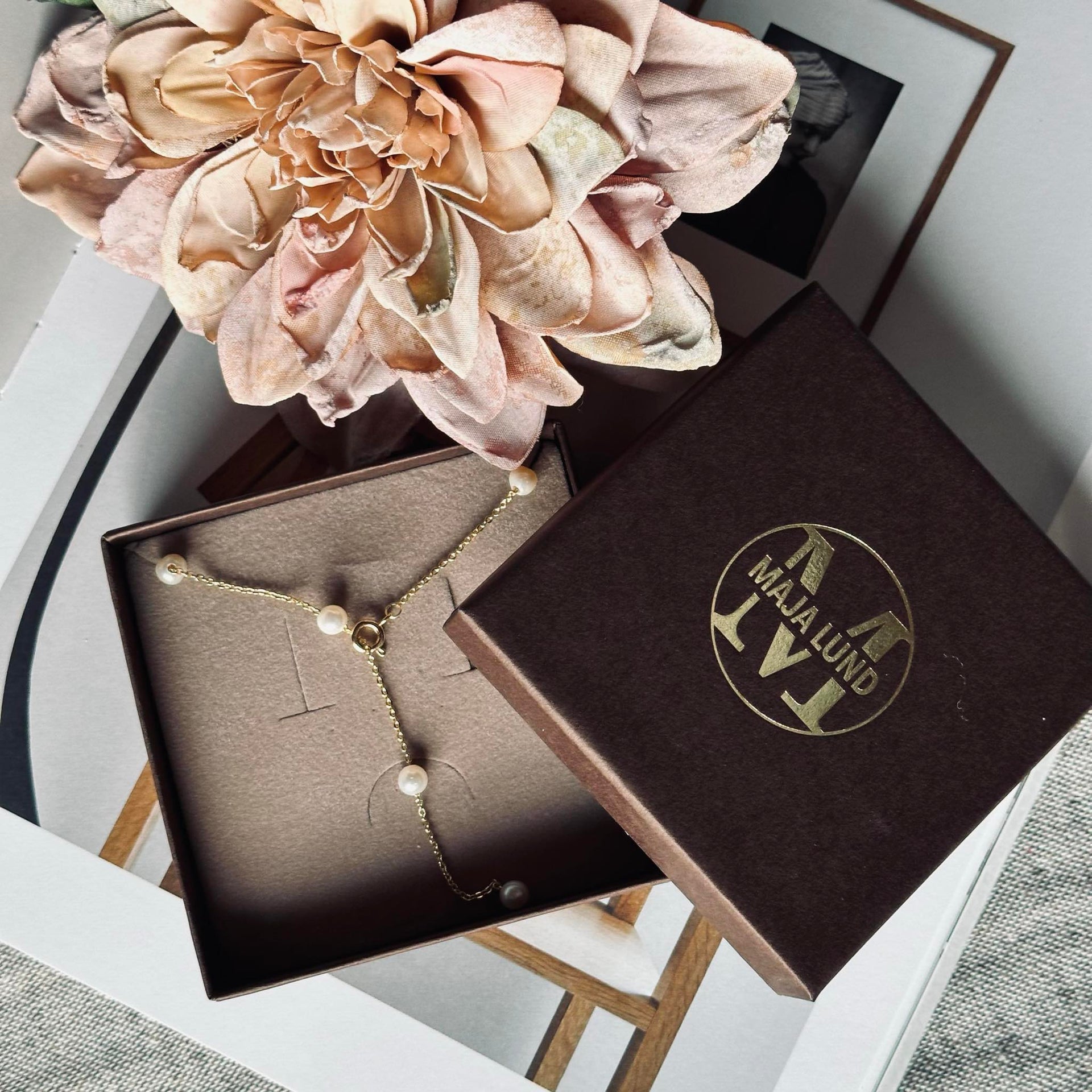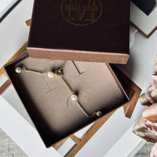 - Perlekjedet kan bæres som et klassisk kjede eller som et Y-kjede
