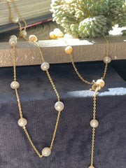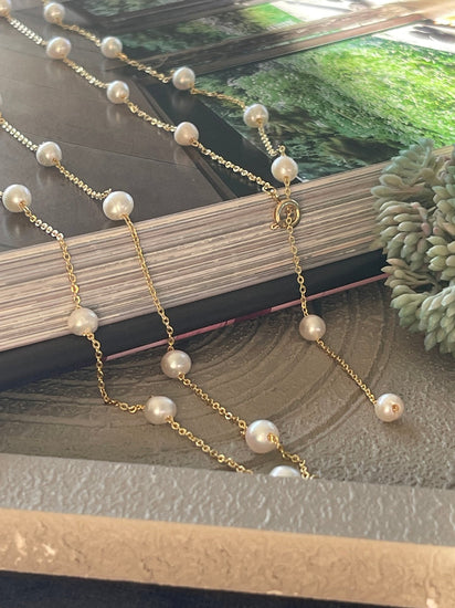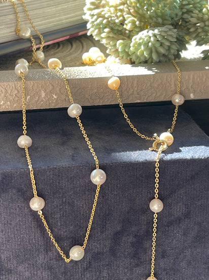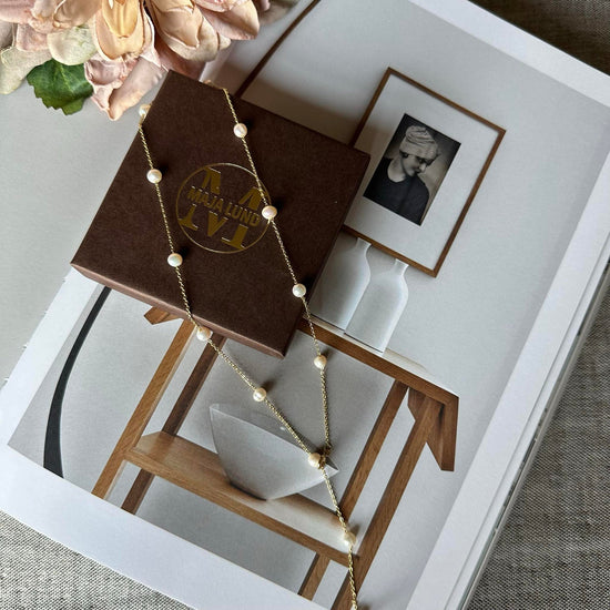 Ekte ferskvannsperler gir et naturlig og tidløst utseende som kan komplementere ulike stiler. Deres subtile glans og varierte former tilfører en organisk dimensjon til smykkene. Ferskvannsperler er kjent for sin holdbarhet, noe som gjør at halskjedet kan brukes ofte uten å miste sin sjarm. Denne typen perler har også en lettere vekt, noe som gjør smykket behagelig å bære hele dagen.
