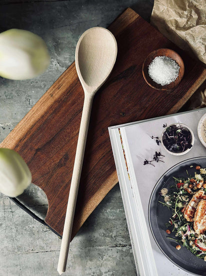 Gryteskjeen er laget av bøk, et materiale som er kjent for sin holdbarhet og naturlige skjønnhet. Bøk gir en solid følelse i hånden, samtidig som det er skånsomt mot kokekar og panner. Det naturlige treverket gir ikke bare en estetisk tiltalende overflate, men det er også motstandsdyktig mot flekker og lukt, noe som gjør den enkel å rengjøre og vedlikeholde.