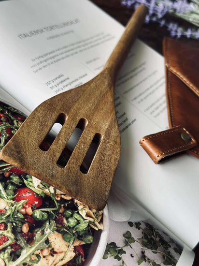 Hullsleiven er laget av akasietre, noe som gir den naturlig holdbarhet og motstandsdyktighet mot fuktighet. Dette materialet bidrar til en lang levetid, samtidig som det er skånsomt mot gryter og panner. Akasietreets naturlige mønster gir hver sleiv et unikt utseende og tilfører en varm og jordnær følelse til kjøkkenet ditt.