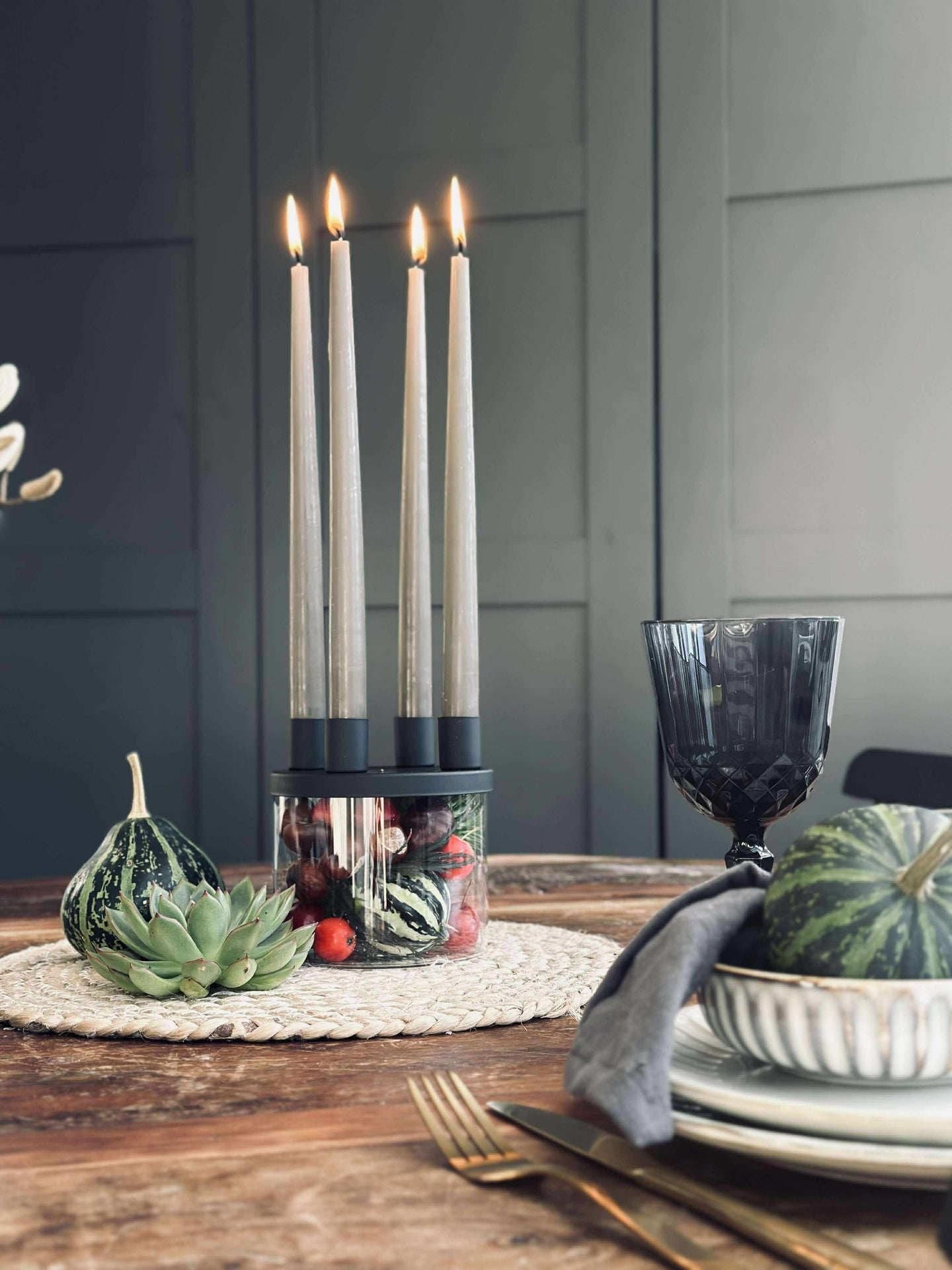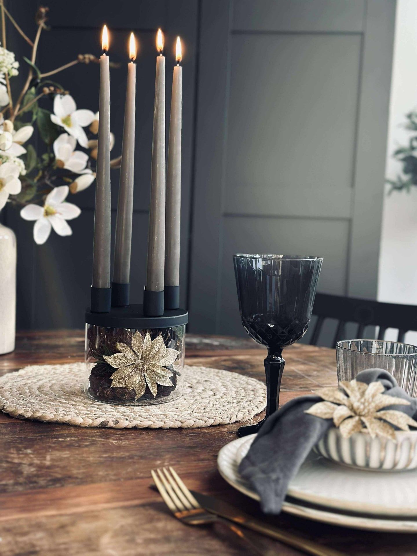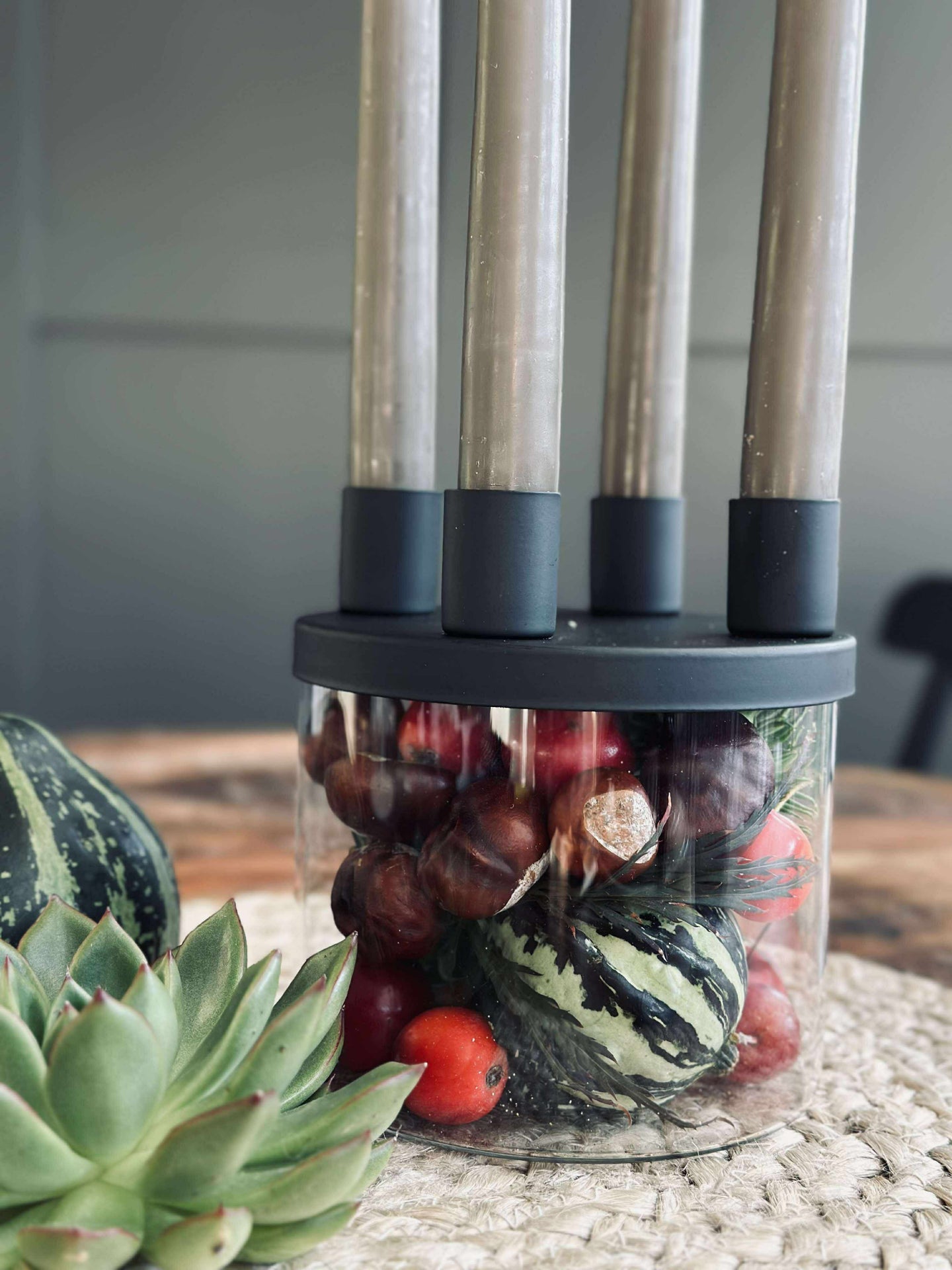 Lysestaken er utført i glass og holdt i svart for et rent og minimalistisk look. Det klare glasset gir et lett og transparent uttrykk, mens den svarte fargen samler helheten og gjør den enkel å kombinere med både lyse og mørke nyanser.