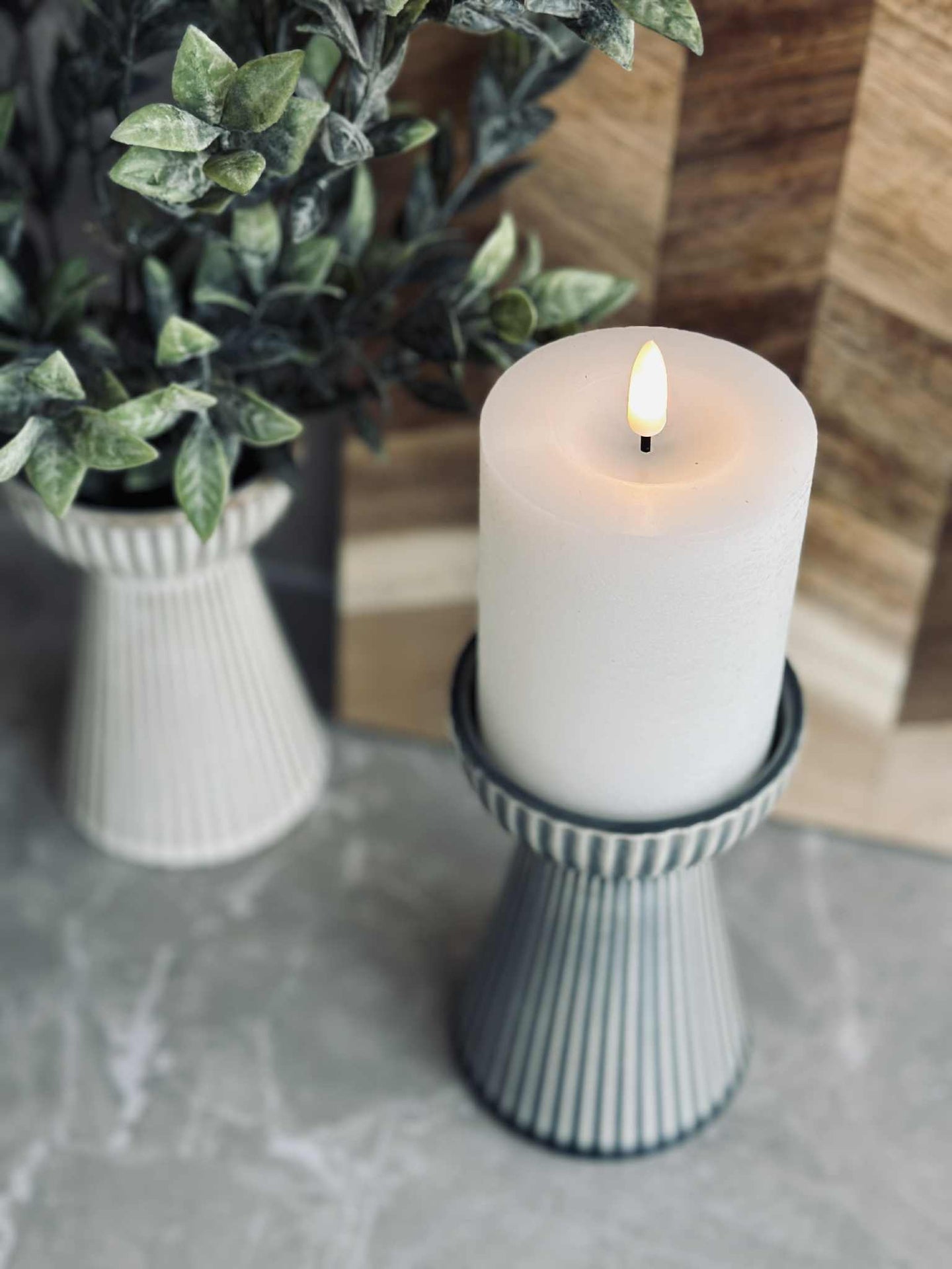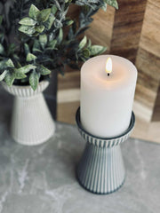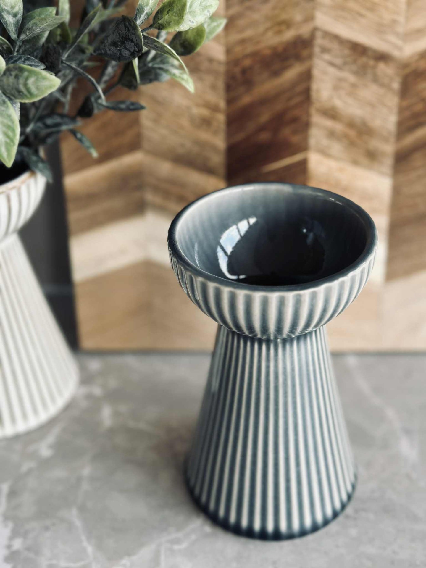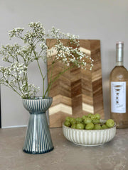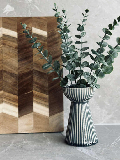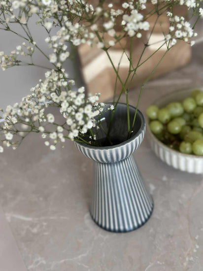 Hyasintvasen er laget av stentøy, noe som gir den en solid og varig kvalitet. Materialets naturlige tyngde gir stabilitet, slik at vasen står stødig selv med større blomsteroppsatser. Stentøyets tekstur tilfører en taktil dimensjon til designet, og den matte overflaten gir en subtil, men distinkt visuell appell. Dette gjør vasen til et funksjonelt og estetisk tiltalende tillegg i ethvert rom.