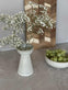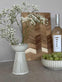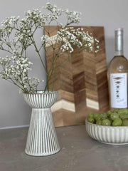 Vasen er laget av steintøy, noe som gir den en robust og solid struktur. Materialet bidrar til å holde hyacintene stabile og beskyttede, samtidig som det gir en naturlig estetikk som komplementerer plantenes skjønnhet. Steintøyets tyngde sikrer at vasen står stødig, selv når den er fylt med vann, noe som gir trygghet i hjemmet.