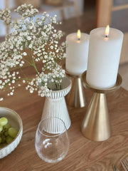 Når du ønsker en enkel løsning for å vise frem spesifikke blomster eller skape en lun atmosfære med levende lys, tilbyr denne vasen en praktisk og stilren tilnærming. Den er ideell for dem som verdsetter allsidighet og funksjonalitet i hjemmedekorasjon.