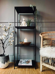 Er du lei av rot og ønsker en enkel løsning for oppbevaring? Denne hyllen i svart metall gir deg muligheten til å organisere eiendelene dine på en praktisk måte. Den er ideell for både hjem og kontor, og kombinerer funksjonalitet med et klassisk utseende.