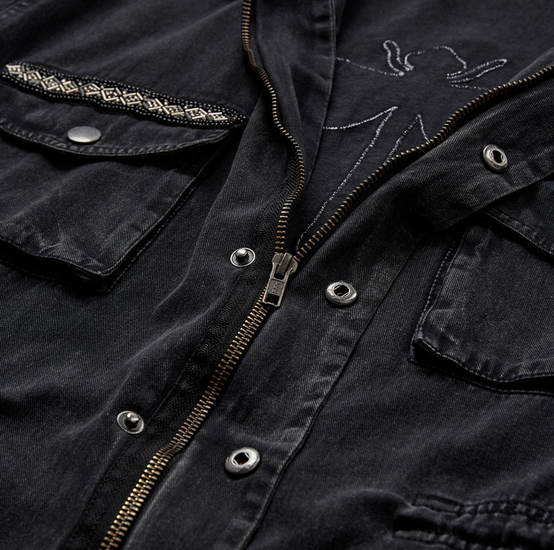 - Jakken lukkes med glidelås og knapper