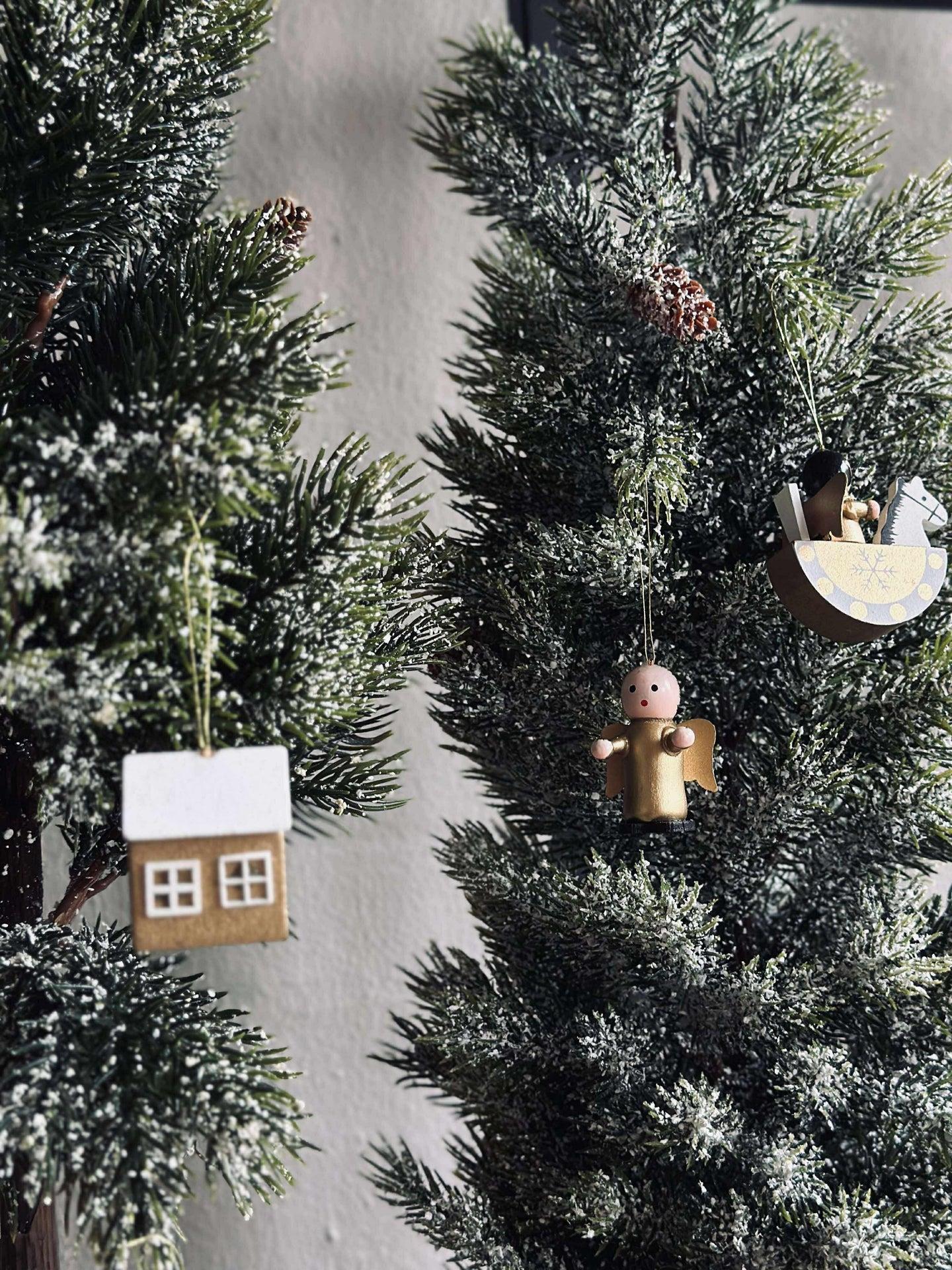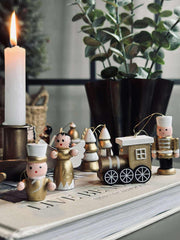 Julehengere laget av tre gir en naturlig og varm følelse til hjemmet i høytiden. Materialet er kjent for sin holdbarhet og tidløse estetikk, noe som gjør at de enkelt kan integreres i ulike interiørstiler. Treets tekstur tilfører en organisk dimensjon til dekorasjonen, som kan skape en harmonisk atmosfære. I tillegg er tre et miljøvennlig valg som appellerer til den bærekraftige forbrukeren.