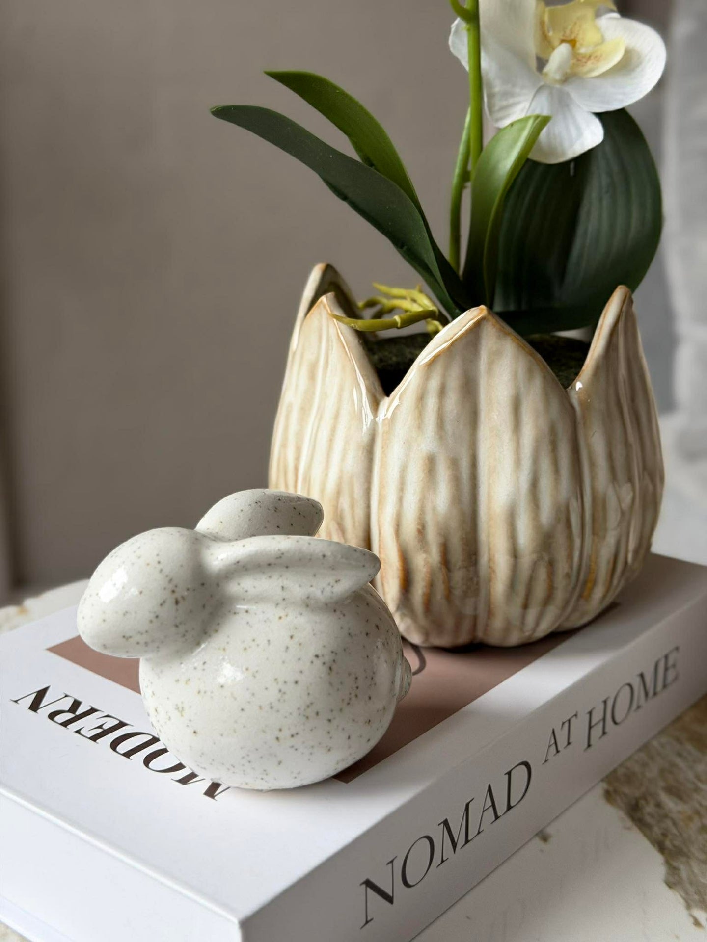 Kaninfiguren er utført i keramikk og har et søtt, enkelt uttrykk, som fungerer godt sammen med både moderne og klassisk boliginnredning.