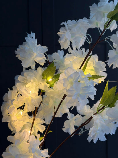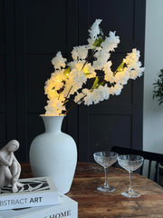 Kirsebærgren med lys - Hvit er en dekorativ gren med innebygd LED-lys, som gir et lett og elegant uttrykk i innredningen. De små LED-lysene er integrert i grenen og fremhever den fine, forgrenede formen.