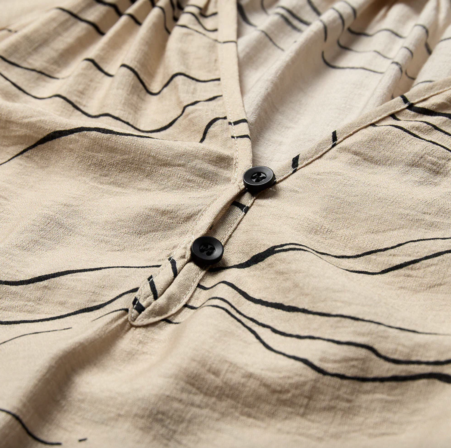 Kjolen er laget i viscose og har et grafisk/geometrisk mønster. Den beige nyansen gjør den enkel å style, enten du går for et enkelt uttrykk eller vil bygge videre med farger og accessories.