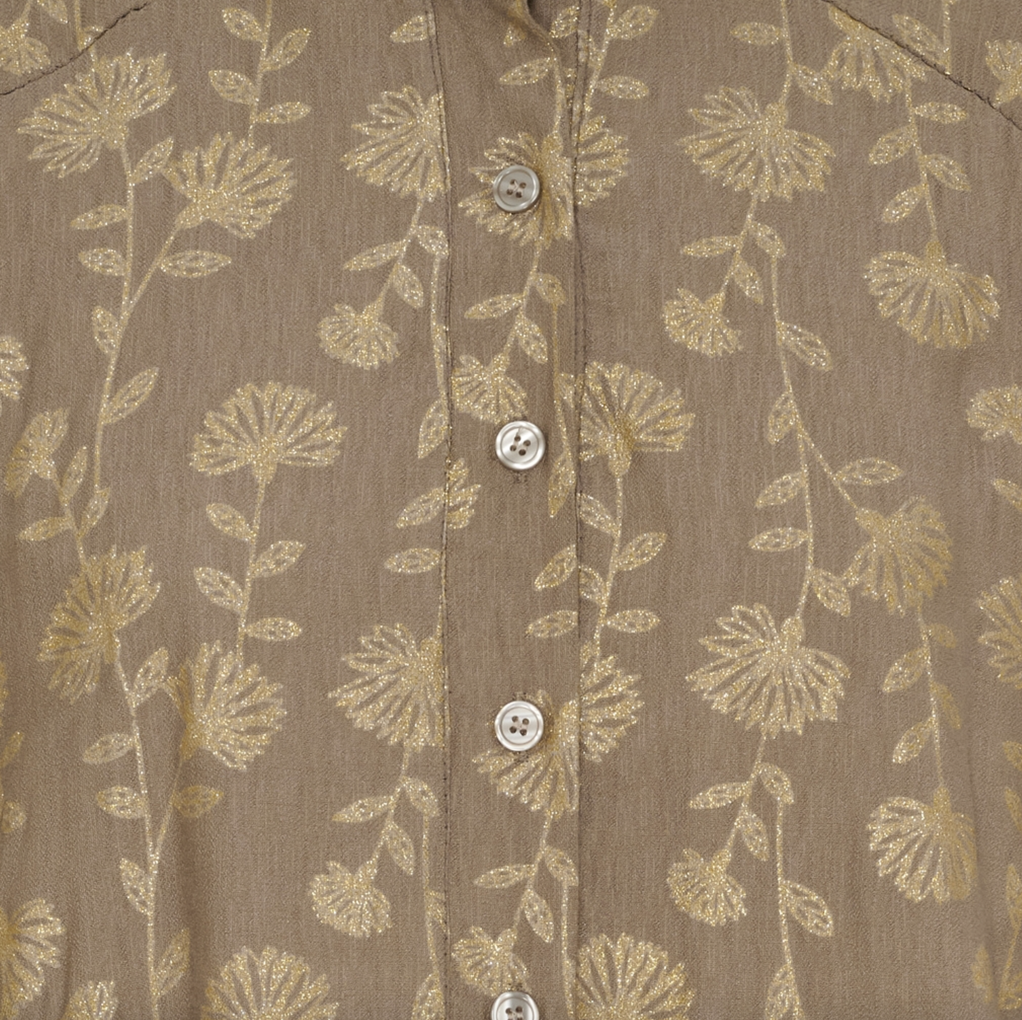 Kjolen er i viskose og har et print med gull-look, som skaper en fin kontrast til den brune bunnfargen. Det grafiske uttrykket gjør kjolen til et opplagt valg når du ønsker en gullkjole med et spesielt mønster.