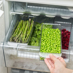 De gjennomsiktige kassene i kjøleskapsorganiseringen gir en praktisk løsning for å holde oversikt over innholdet uten å måtte åpne hver boks. Dette designet forenkler hverdagen ved å spare tid og redusere matsvinn, ettersom du enkelt kan se hva du har tilgjengelig og planlegge måltidene dine mer effektivt. Det gir også et ryddigere og mer organisert kjøkkenmiljø.