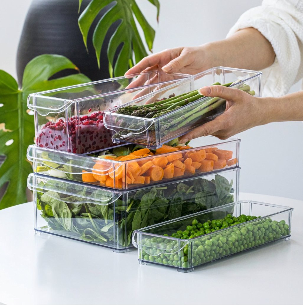 - Kjøleskapsorganiseringskassene er stabelbare for optimal plassutnyttelse