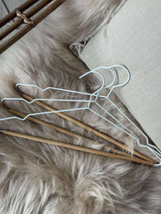 - Kleshengerne kombinerer hvitt metall og ekte tre