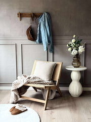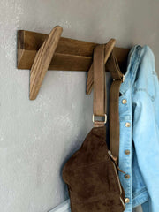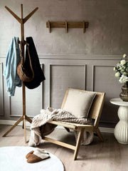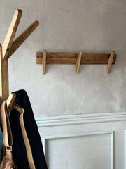 Forestill deg en entré der alt har sin plass. Med vår elegante knaggrekke i eik kan du enkelt organisere yttertøyet ditt. La jakker og skjerf finne sin naturlige plass, og opplev den roen som følger med et ryddig hjem. Gi entréen din en praktisk og stilren oppgradering.