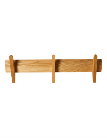 Knaggrekken er laget av massiv, ekte eik, noe som gir den holdbarhet og robusthet som varer i mange år. Eikens naturlige varme og tidløse utseende gjør den til et allsidig tillegg til enhver entré. Materialvalget sikrer også at knaggrekken tåler daglig bruk, samtidig som den beholder sin visuelle appell. Eikens styrke og stabilitet gir trygghet ved oppheng av diverse yttertøy og tilbehør.