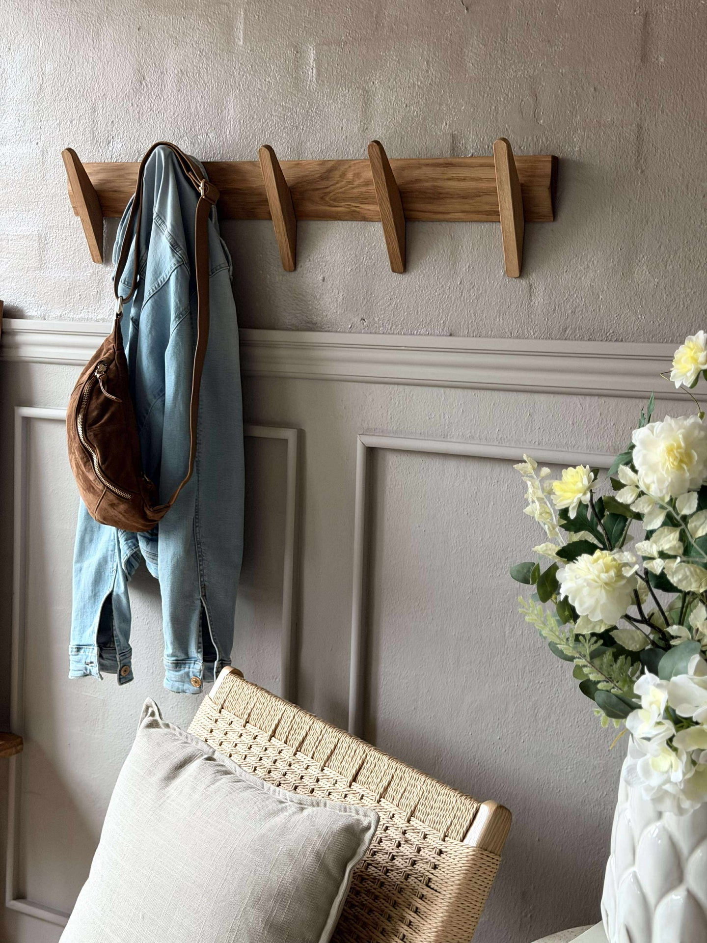 Opplev hvordan en enkel knaggrekke kan forvandle din entré til et ryddig og stilfullt rom. Se for deg en hverdag der jakker og vesker alltid har sin plass, og du blir møtt av en harmonisk atmosfære hver gang du kommer hjem. Skap orden med et snev av nordisk eleganse.