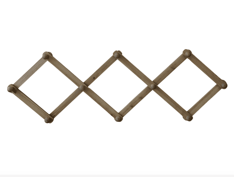 Knaggrekken med 10 knagger laget av ekte tre gir en naturlig følelse til ethvert rom. Med rikelig plass til oppheng av jakker, skjerf og vesker hjelper den med å holde hjemmet organisert. Ekte tre gir en varm og innbydende atmosfære, samtidig som det sikrer holdbarhet og stabilitet, noe som er ideelt for daglig bruk.