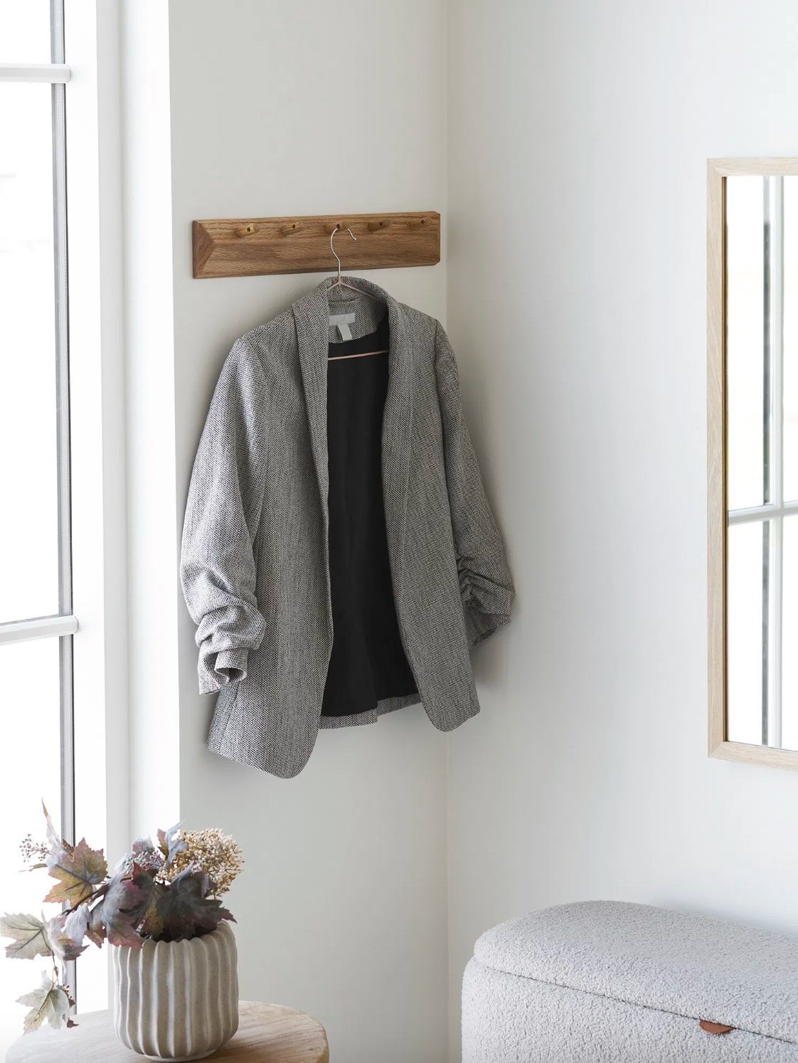 Sliter du med kaotiske ganger? Denne knaggrekken gir deg en praktisk løsning for å organisere yttertøyet ditt. Designet for å passe inn i ethvert hjem, hjelper den med å holde orden samtidig som den tilfører en tidløs stil til rommet.