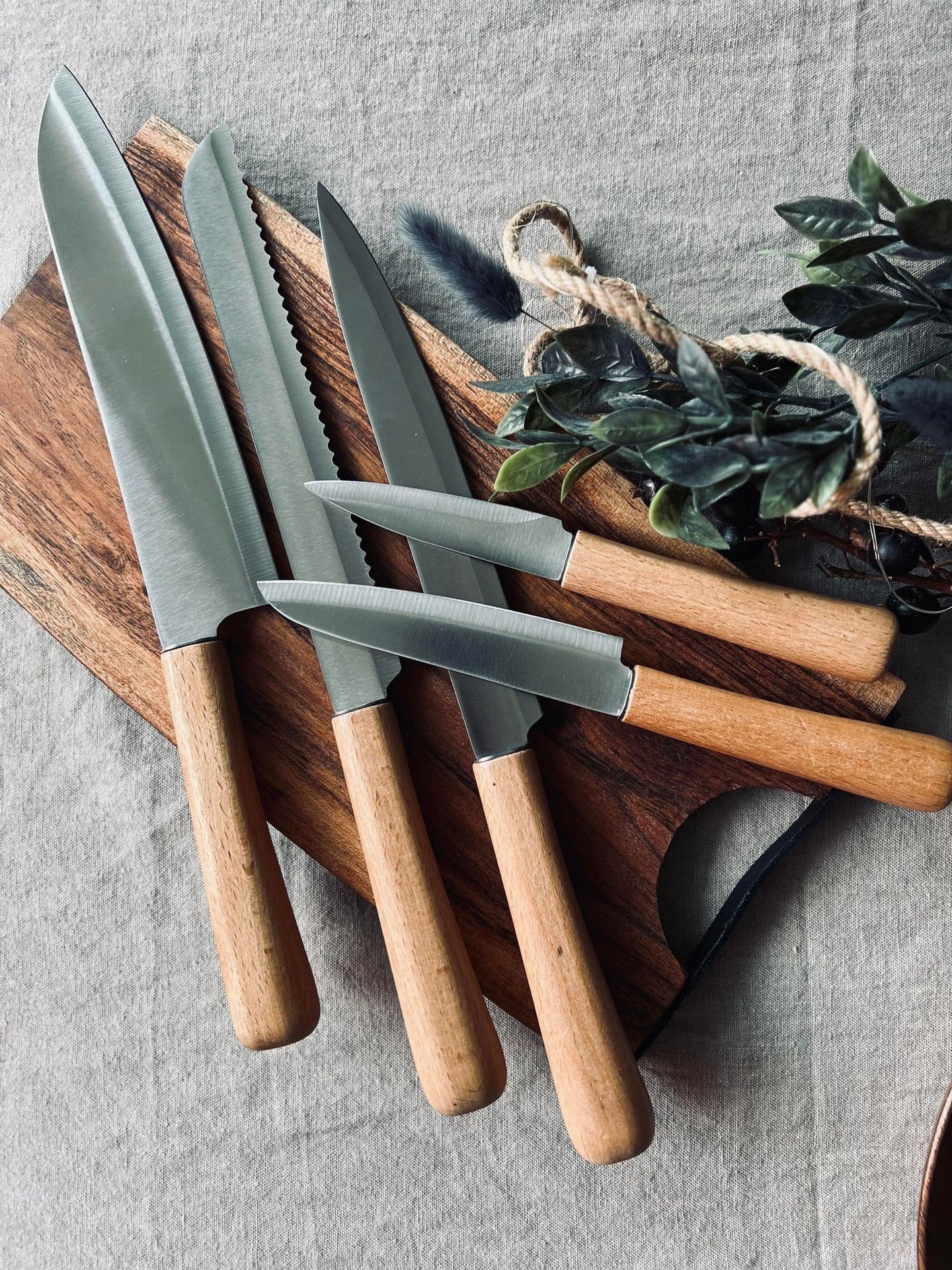 Unngå frustrasjoner på kjøkkenet med et pålitelig knivsett designet for daglig bruk. Dette settet gir deg fem allsidige kniver, noe som gjør matlagingen mer effektiv. Med et robust design kan du forvente pålitelig ytelse uten å bekymre deg for rask slitasje.