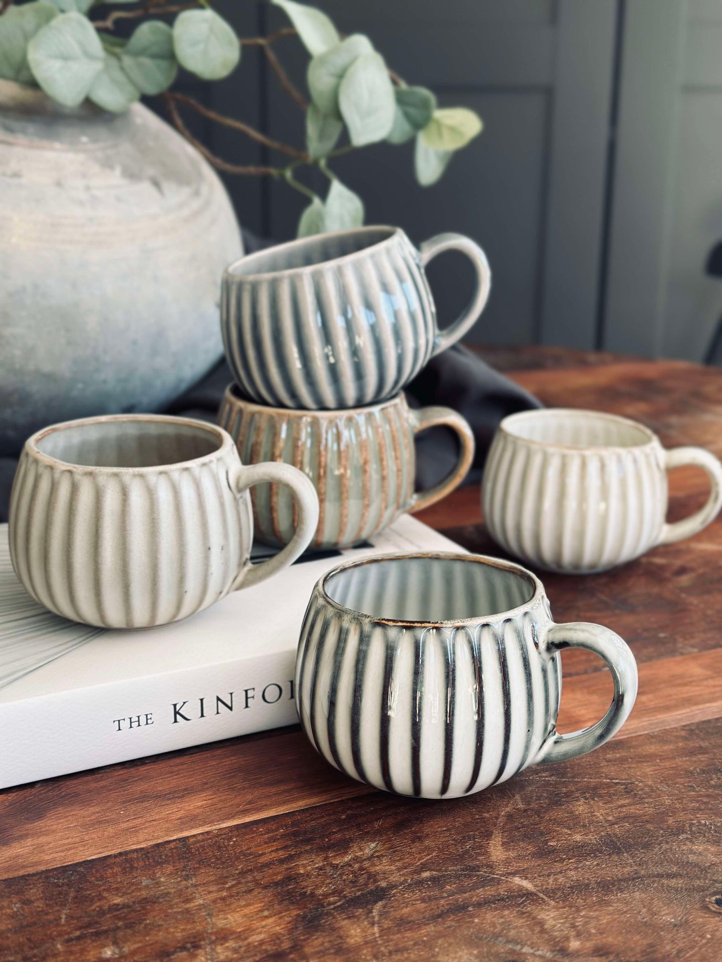 Krusene er laget av steintøy, som gir en solid og holdbar struktur. Steintøyets naturlige materialer gir en jordnær estetikk og en behagelig følelse i hånden. Dette materialet er kjent for sin evne til å holde på varmen, noe som gjør det ideelt for varme drikker. Den robuste overflaten er også motstandsdyktig mot riper og skår, noe som bidrar til langvarig bruk.