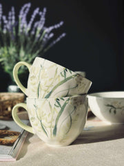 La Krus Flora – Grønn bli en del av ditt daglige morgenritual. Forestill deg å starte dagen med en kopp varm kaffe i hånden, omfavnet av krusets subtile, naturlige skjønnhet. Gjør din morgenstund til en behagelig opplevelse der estetikk og funksjonalitet går hånd i hånd.