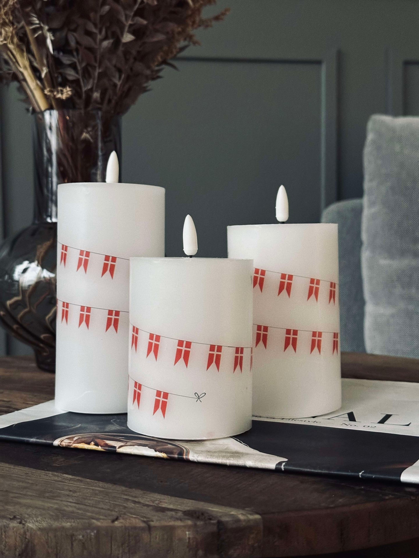 LED blokklys med flagg – Sett med 3 stk og fjernkontroll