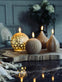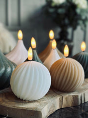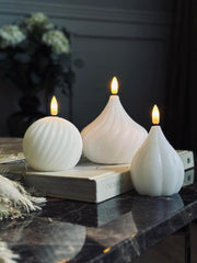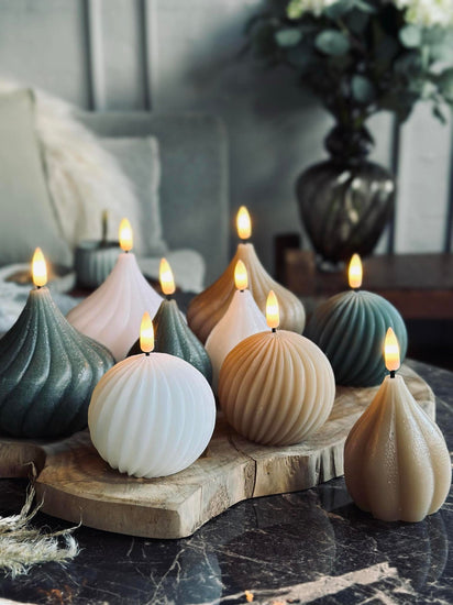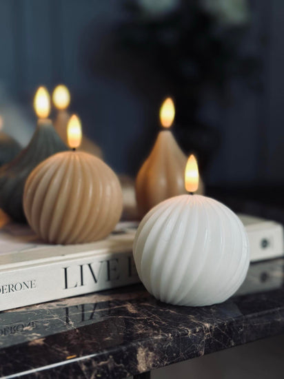 LED-lyskule laget av voks gir et naturlig og varmt utseende som harmoniserer med ulike interiørstiler. Voksen gir en myk glød som etterligner levende lys, noe som skaper en hyggelig atmosfære i rommet. Materialet gjør også at overflaten føles behagelig å ta på, samtidig som det gir en autentisk og innbydende følelse.