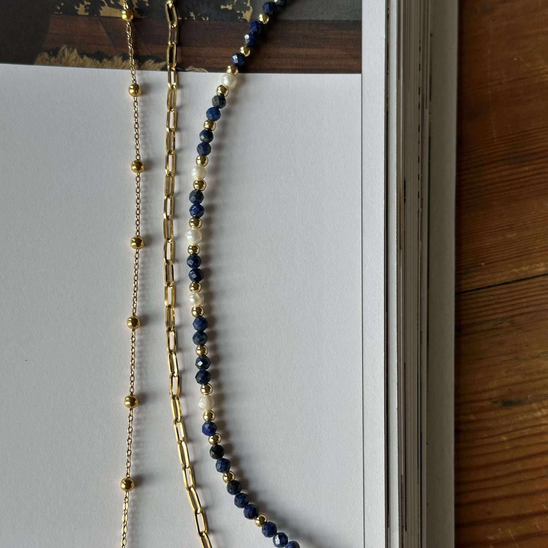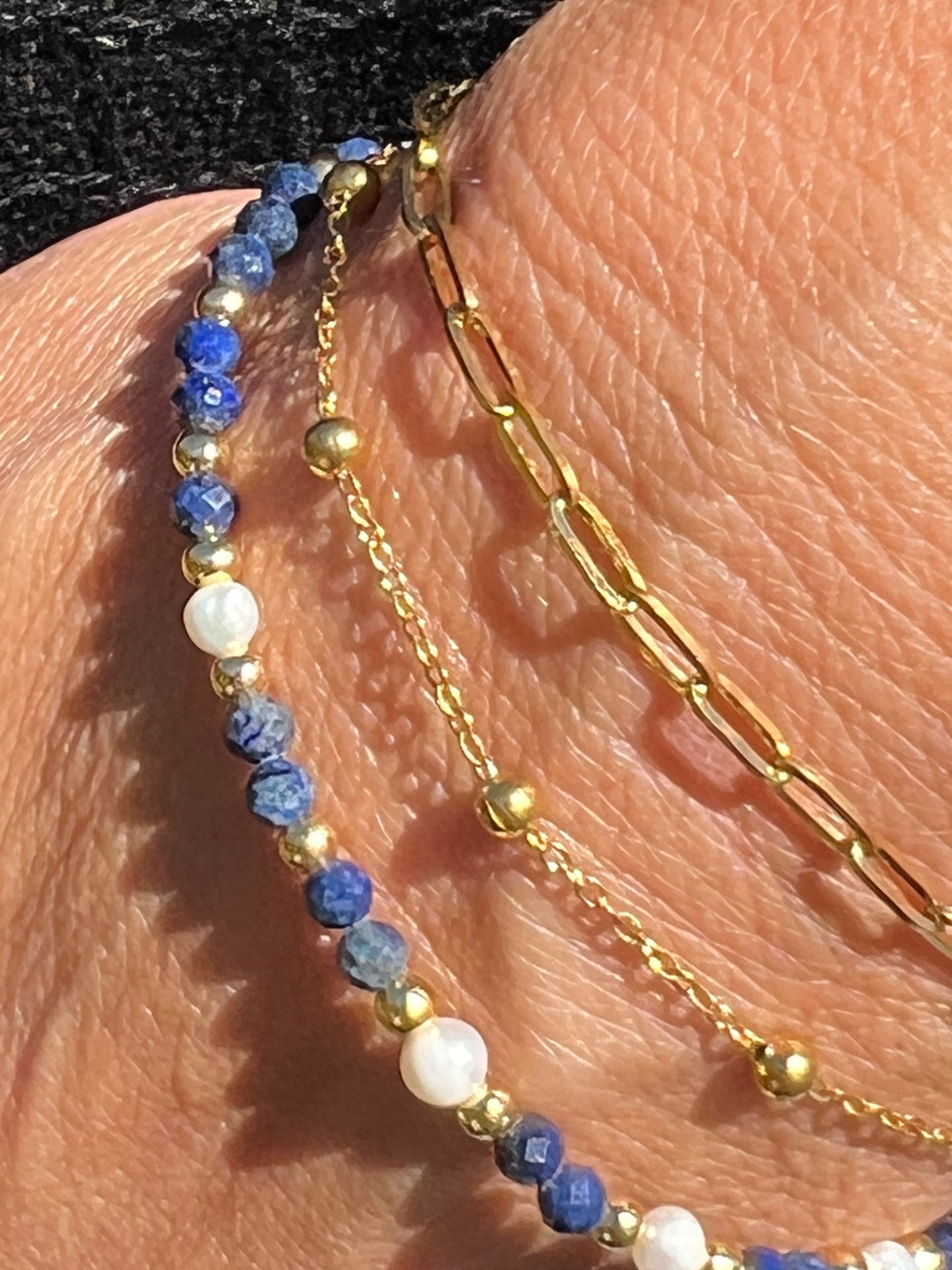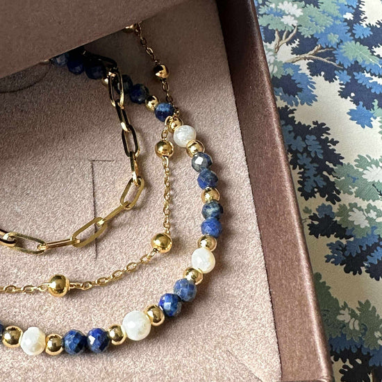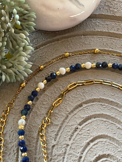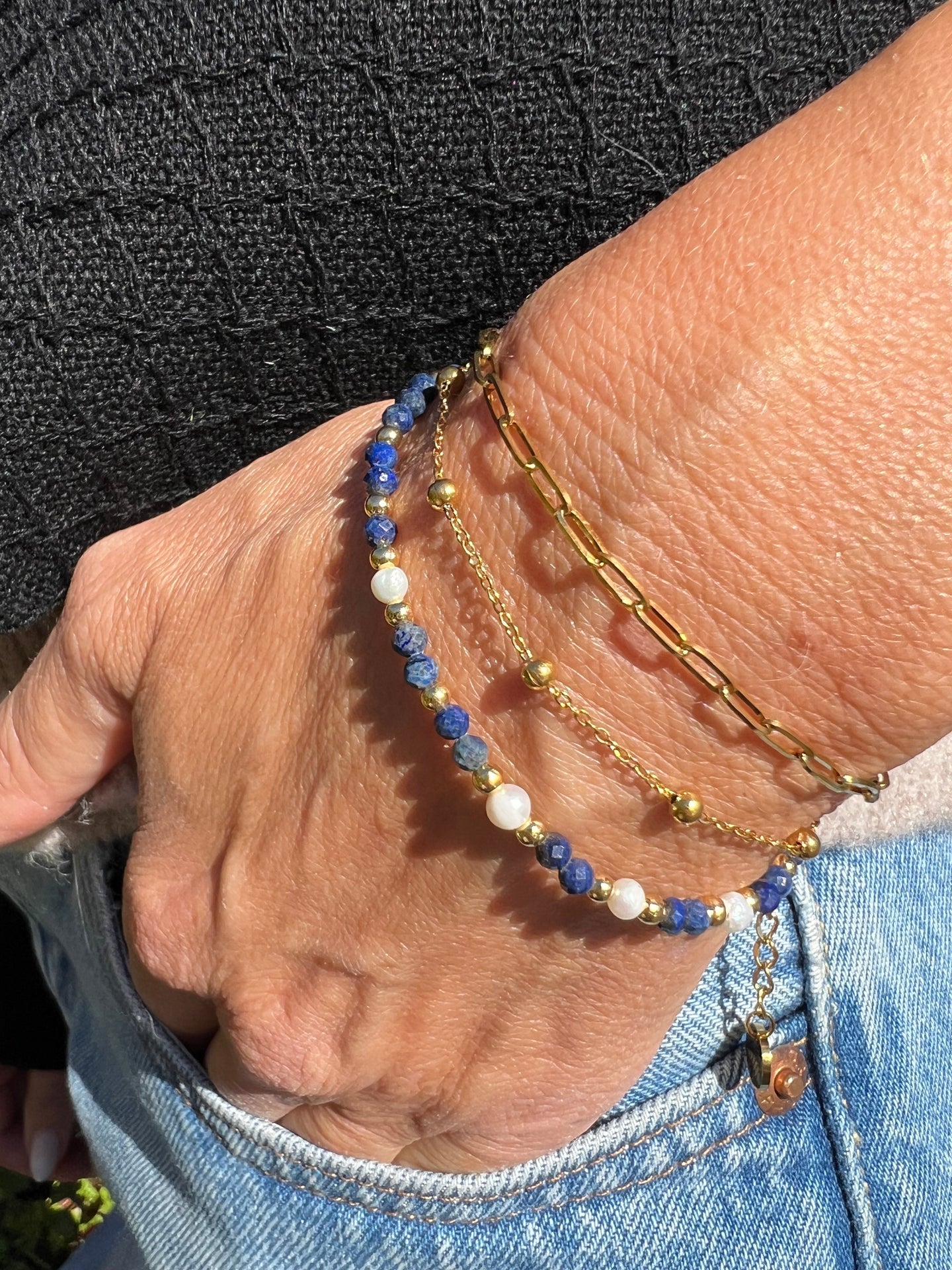 - Armbåndet inkluderer 3 mm facetterte naturstensperler i kongeblå nyanser