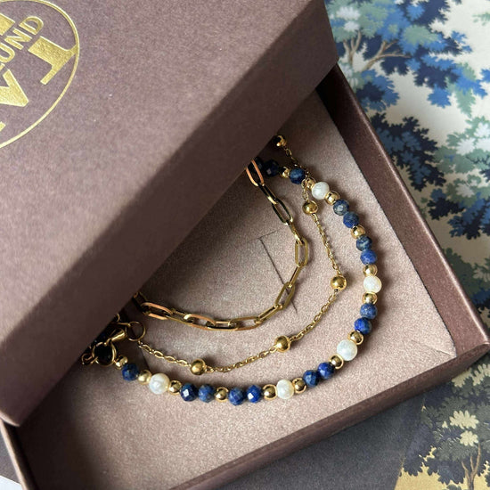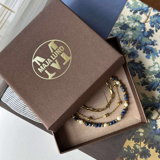 - Settet inkluderer tre armbånd i Lilja perlearmbåndsett
