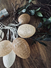 Eggene med lyse og beige nyanser gir en beroligende og innbydende atmosfære til hjemmet ditt under påskefeiringen. Disse dempede fargetonene integreres lett i ulike interiørstiler, noe som gjør dem allsidige for enhver dekorasjon. De subtile nyansene bidrar til å skape en harmonisk balanse og gir rommet en følelse av ro og varme.