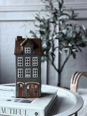 Lyshuset er laget av ekte keramikk, noe som gir det en robust og tidløs kvalitet. Keramikken bidrar til å skape et naturlig og jordnært uttrykk som lett integreres i ulike hjemmemiljøer. Materialet gir også en god varmefordeling, noe som skaper en behagelig og jevn lyssetting. Dette gjør lyshuset til en varig og funksjonell del av interiøret.