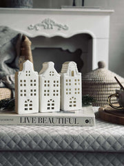 Lyslykten er laget av keramikk, noe som gir den et tidløst og naturlig uttrykk. Keramikkens iboende holdbarhet betyr at lyslykten kan brukes både inne og ute, og den tåler temperaturforandringer godt. Materialets naturlige isolerende egenskaper bidrar til en jevn og behagelig lysfordeling, noe som skaper en varm og innbydende atmosfære i ethvert rom.