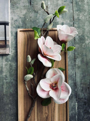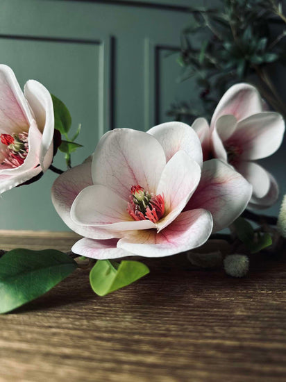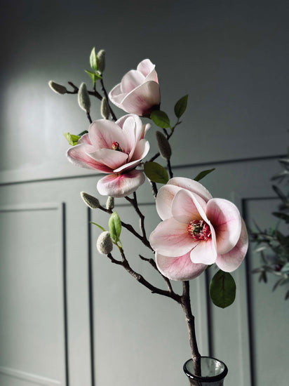 Blomstergrenen har et naturlig og elegant utseende, som gir en følelse av friskhet og liv til rommet. Den myke rosa fargen gir en varm og innbydende atmosfære.