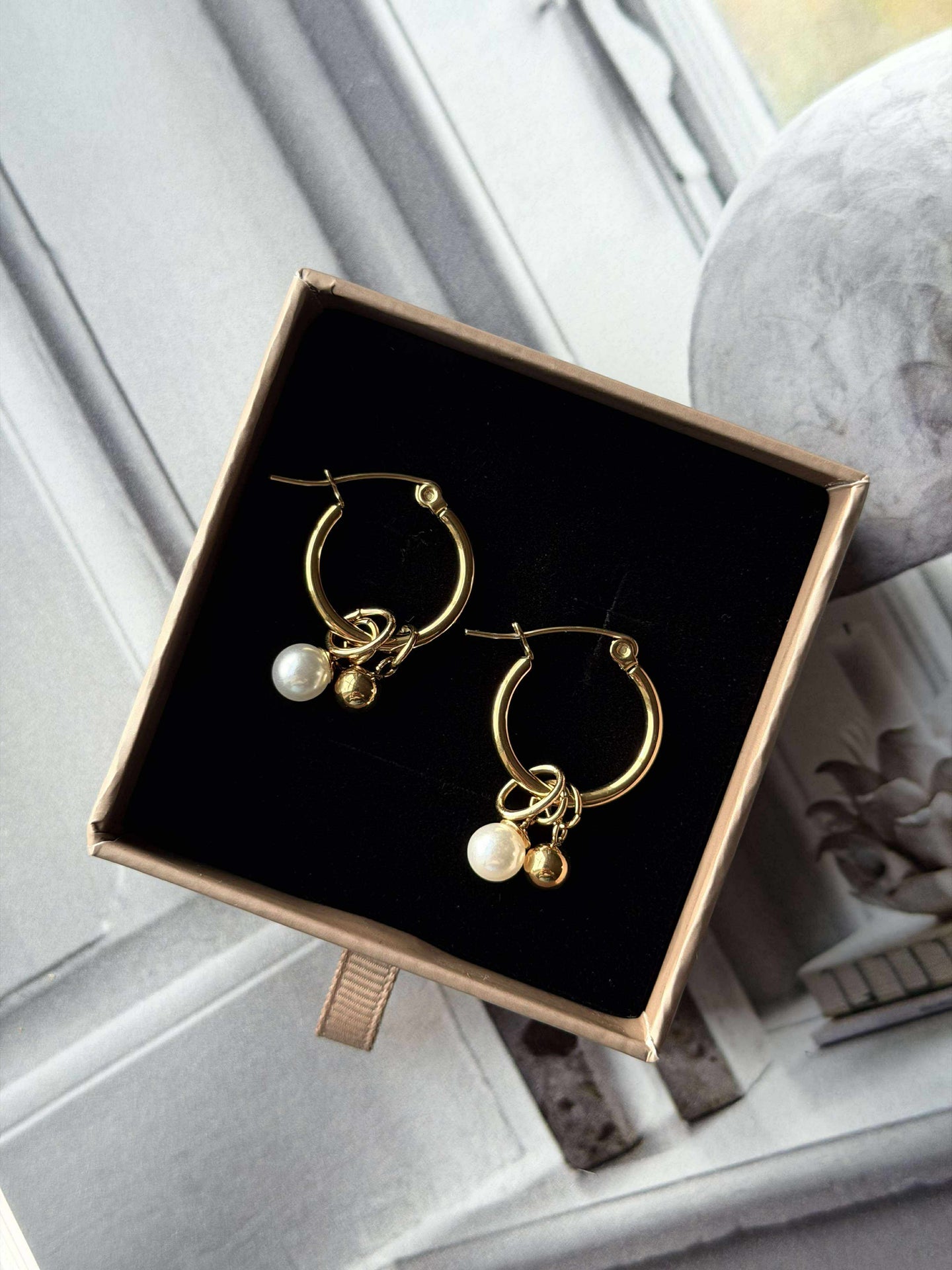 - Øreringene er belagt med 18 karat gull