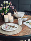 Tallerkenen er laget av melamin, et materiale kjent for sin holdbarhet og lette konstruksjon. Dette gjør den ideell for daglig bruk, ettersom den tåler både støt og riper uten å miste formen. Melaminets letthet gjør det enkelt å håndtere, samtidig som det gir en moderne stil til borddekkingen. Materialet er også enkelt å rengjøre, noe som sparer tid i en travel hverdag.