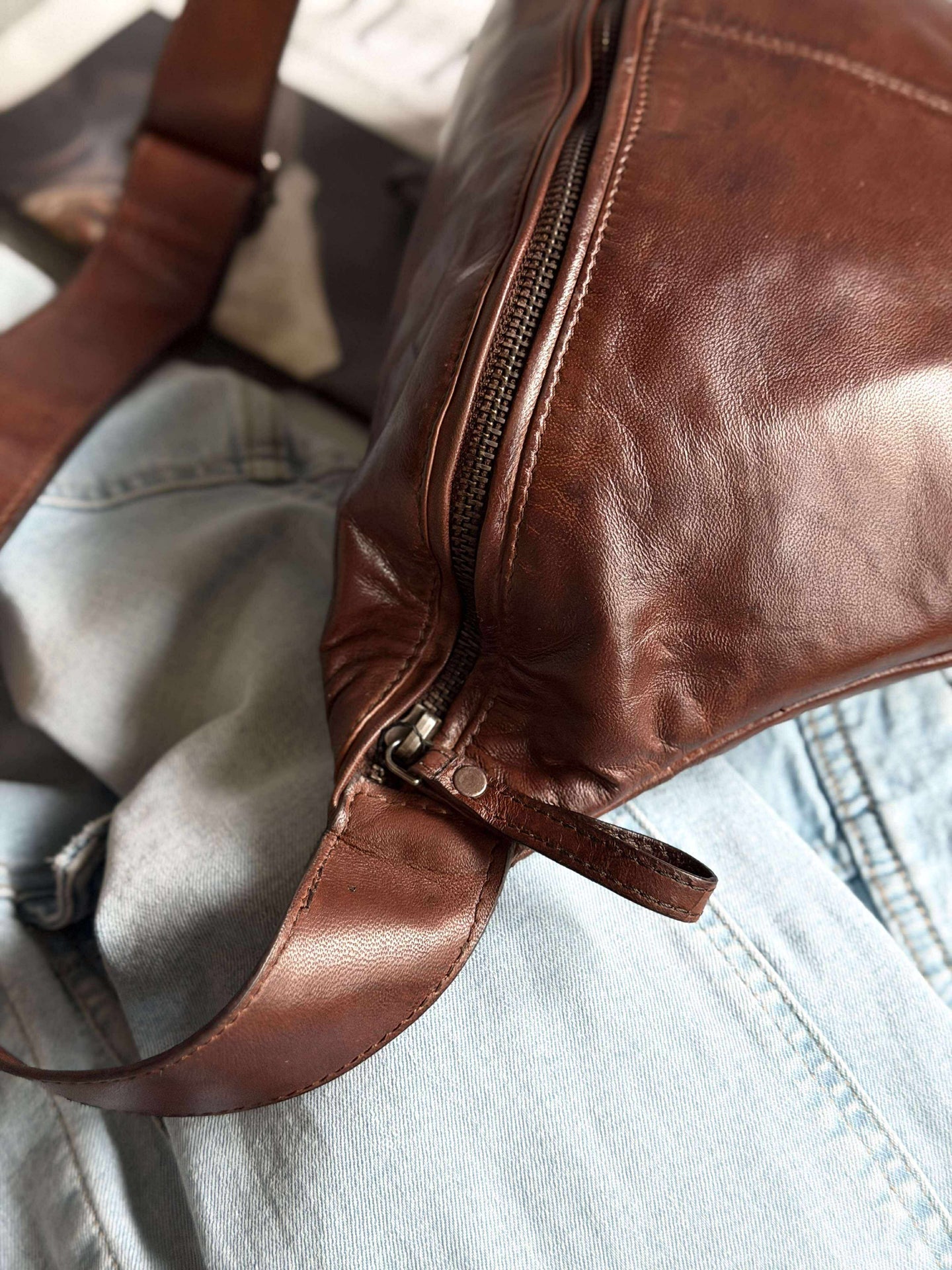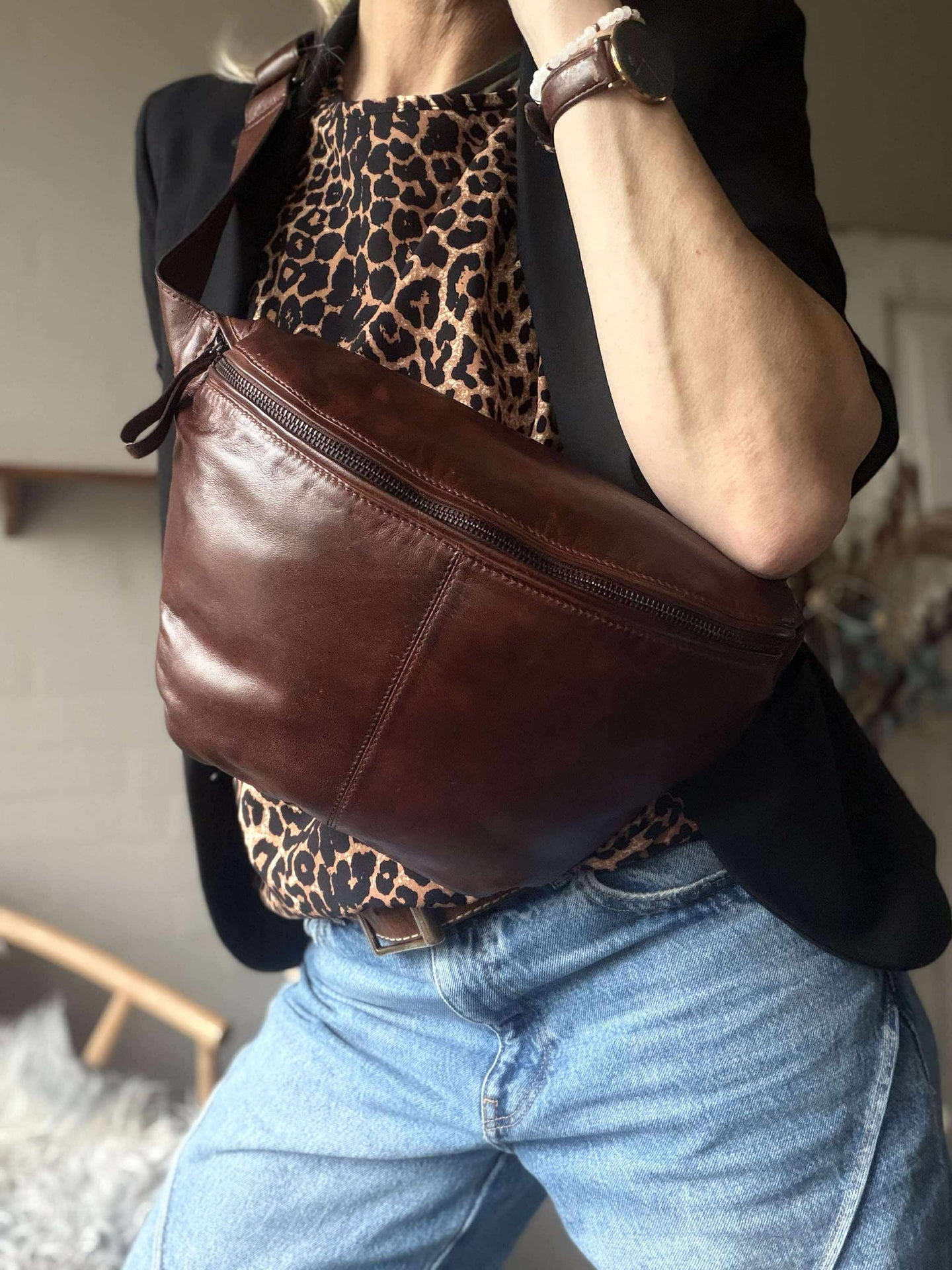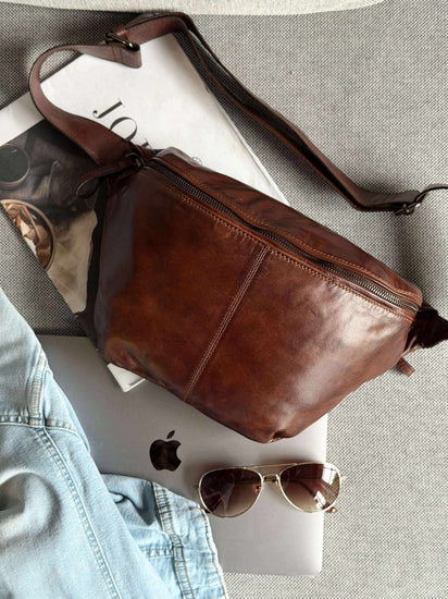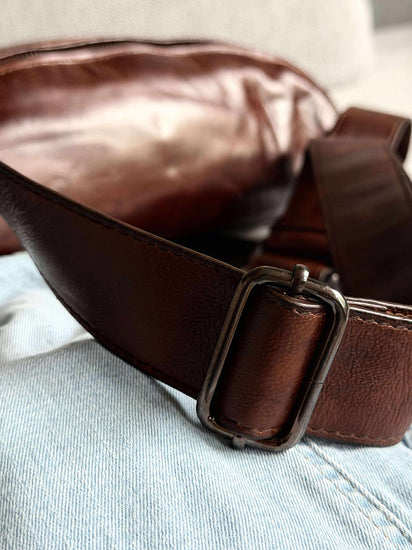 Bumbagen er laget av mykt og luksuriøst skinn, noe som gir en behagelig og sofistikert følelse ved berøring. Skinnets kvalitet sikrer holdbarhet og langvarig bruk, samtidig som det utvikler en vakker patina over tid. Dette materialet gir en tidløs og stilig appell som enkelt kan kombineres med ulike antrekk, og tilfører et snev av luksus til hverdagen.