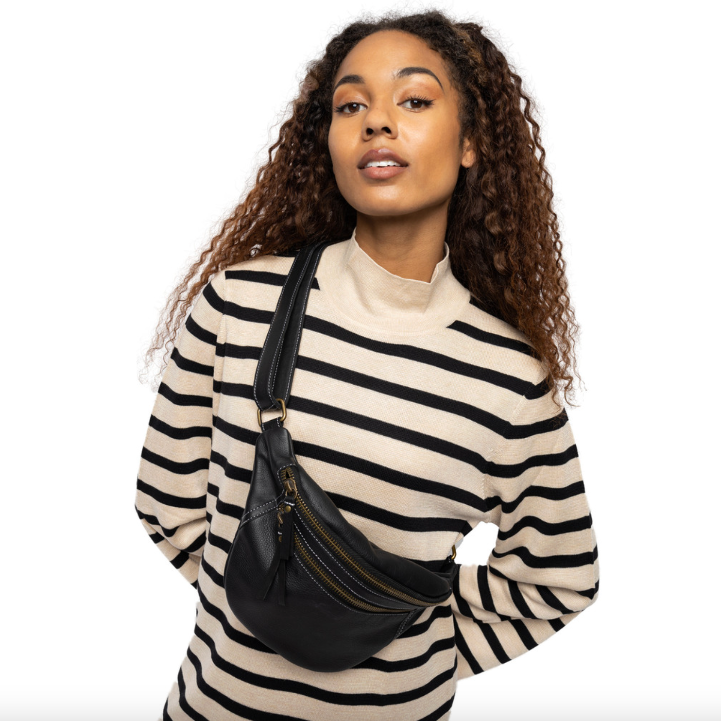 Sliter du med å holde orden på tingene dine når du er på farten? Midjeveske Tammy svart gir deg praktisk oppbevaring og stil i ett. Den er laget av ekte lær, med en justerbar rem for optimal komfort.