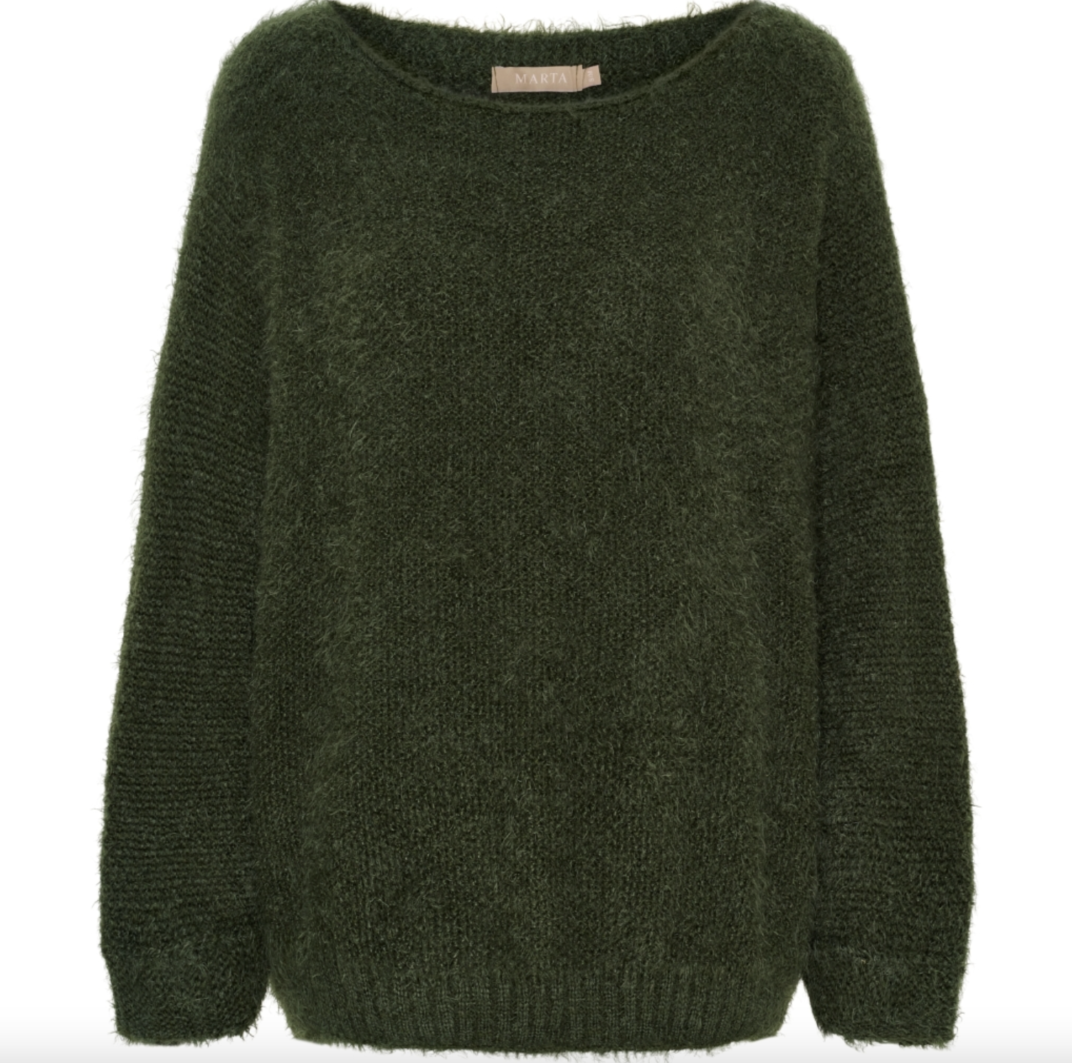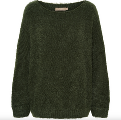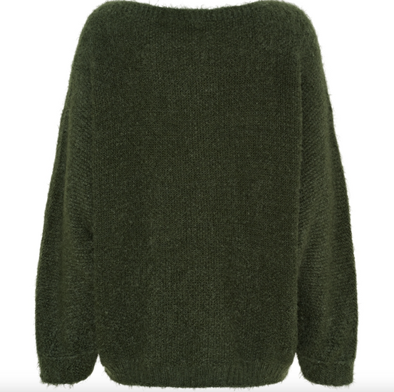 Strikk - Military er en lekker, myk strikk i en ensfarget grønn nyanse med oversized passform. Den romslige fasongen gir et avslappet uttrykk som gjør den enkel å style i garderoben.