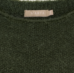 Strikken er fremstilt i 65% akryl, 25% polyamid og 10% lana og har et ensfarget utseende i grønt.